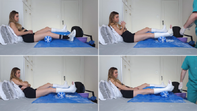 Der Arzt entfernt Julias anderen Schuh und die andere Socke, um den zweiten SLWC anzulegen.
