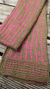 John Arbon Yarns are based in South Molton which is in North Devon and not far from the wilds of Exmoor, of one two National Parks here in Devon. Submissions for their next Annual (a magazine with new patterns showcasing their yarns) came around earlier this year and I designed this stitch pattern. Whilst I didn’t make the final cut I had fabulous support from John Arbon’s team and got to knit with their beautiful Knit by Numbers range. So, for you, here is my Exmoor Heathers scarf and hat inspired by the heather found on Exmoor with pinks and greens, although you can use whatever colours you want. You will use a strand of double knit yarn and a strand of 4ply, interchanging which you knit with and which you leave to float creating the stitch pattern.