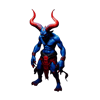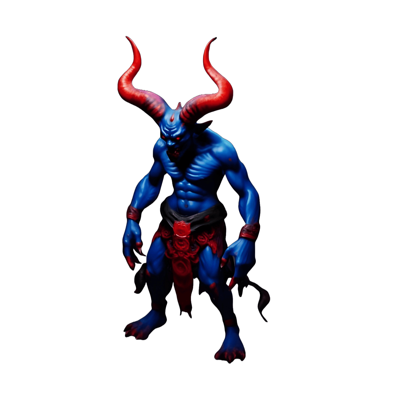 - The Night Demon (Blue): A sleek, athletic demon warrior in deep blue with striking red horns and tribal-style cloth elements.