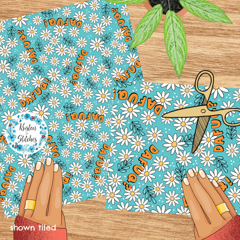 Dafuq? Seamless Pattern, Sarcastic Swear Words, Blue Floral