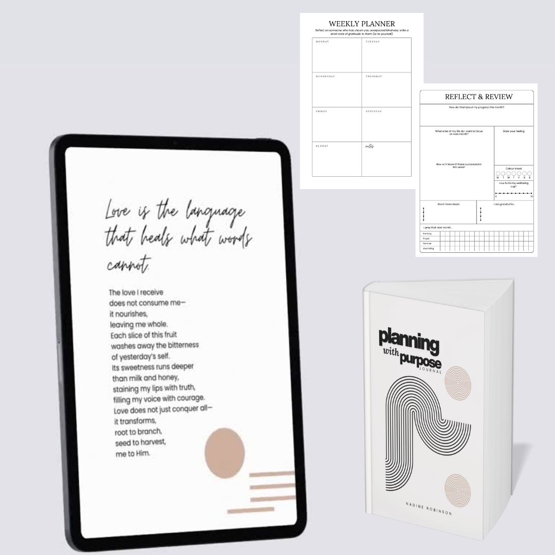 Planning with Purpose is a comprehensive 12-month planner and journal that intertwines faith with personal growth, designed to help you stay organised while fostering your spiritual, emotional, and mental development. Each month features carefully selected Scripture passages that inspire reflection and connect you with your faith.