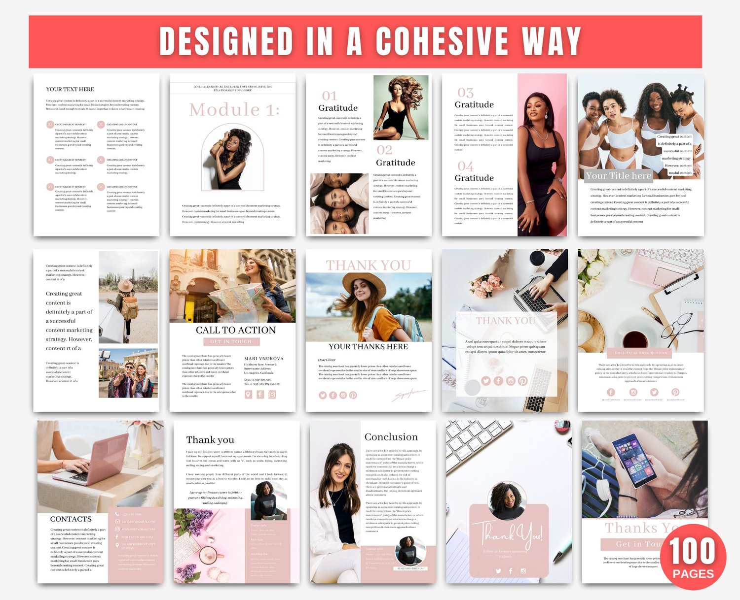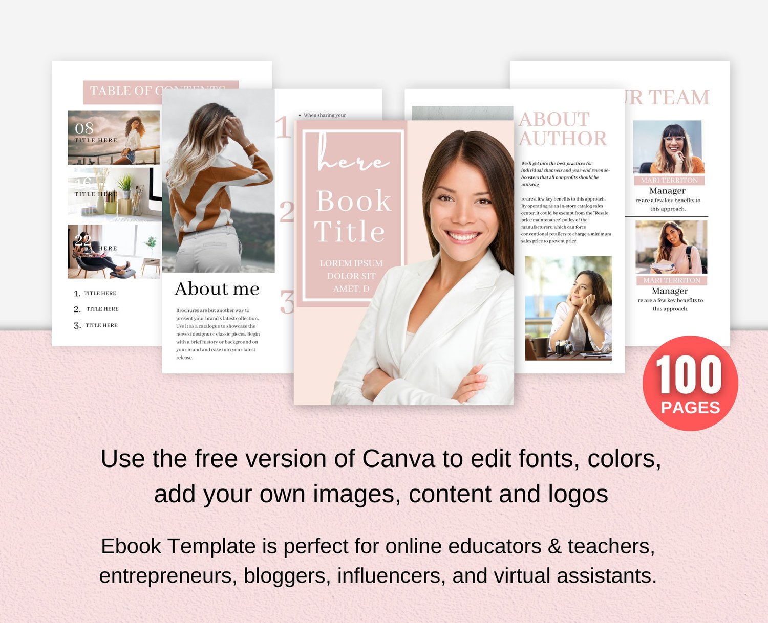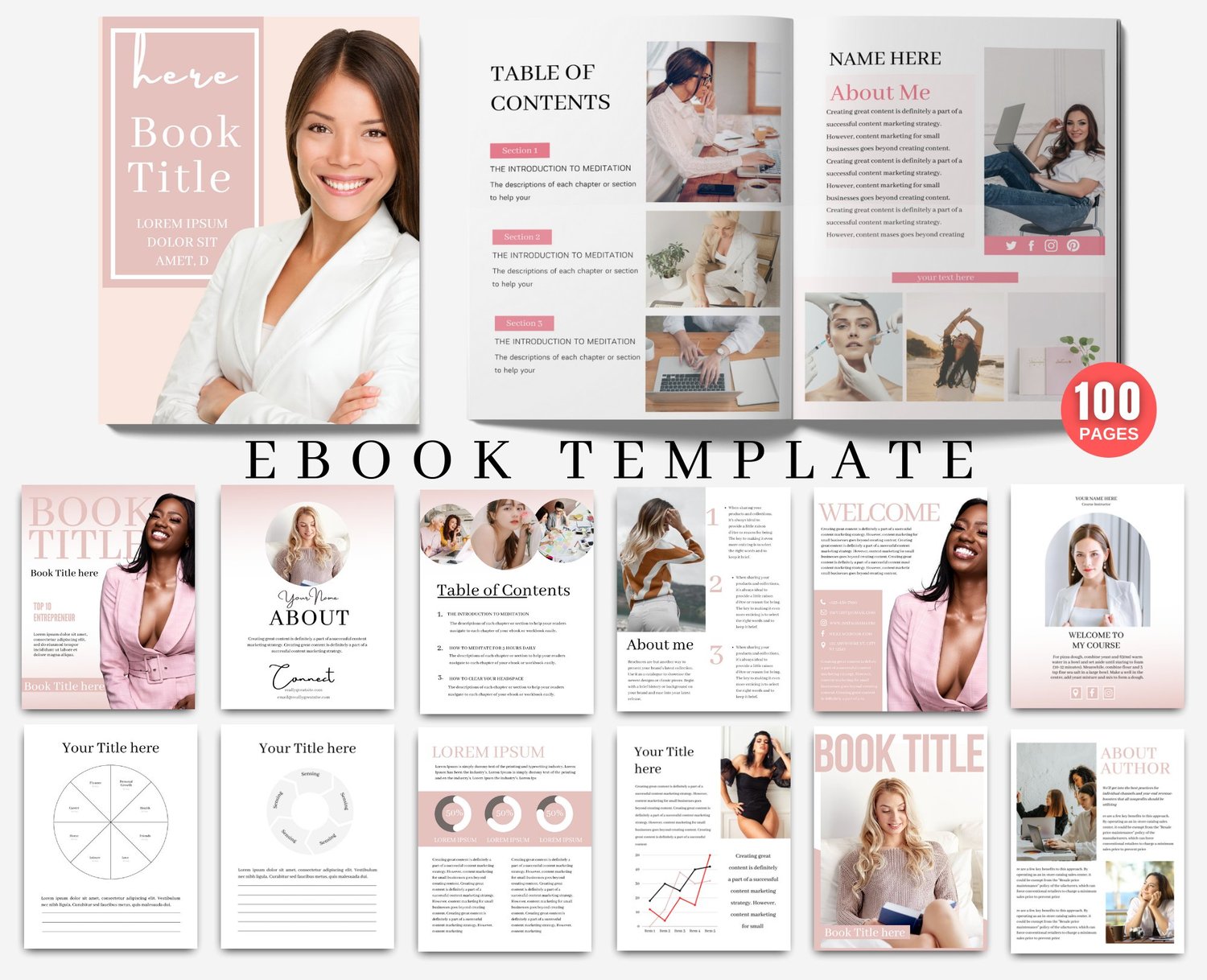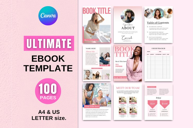 100 pages eBook Template for Canva (Pink)