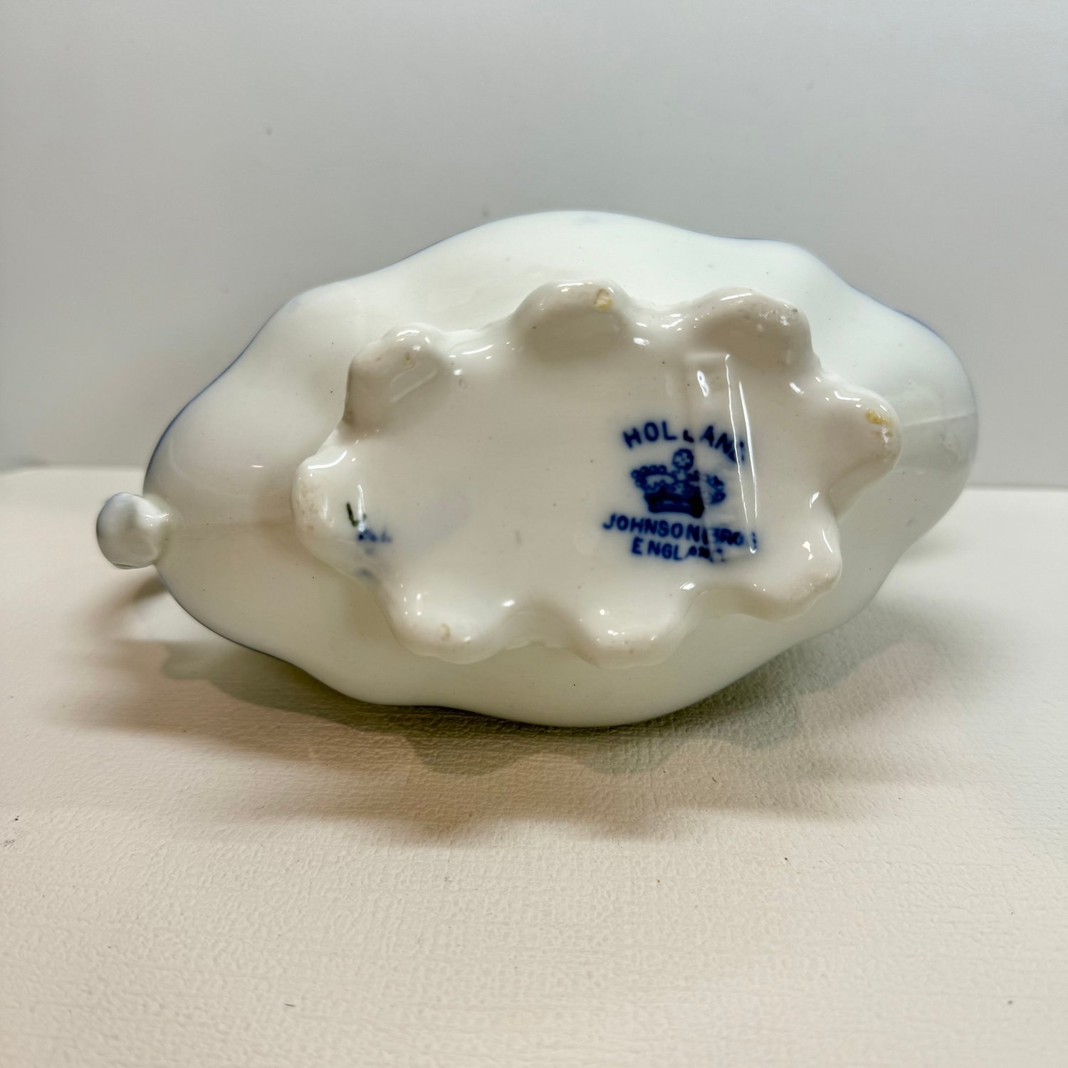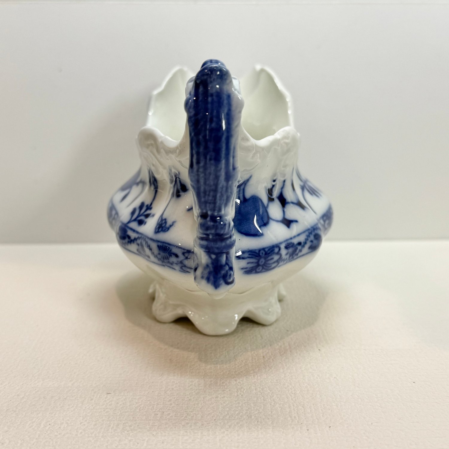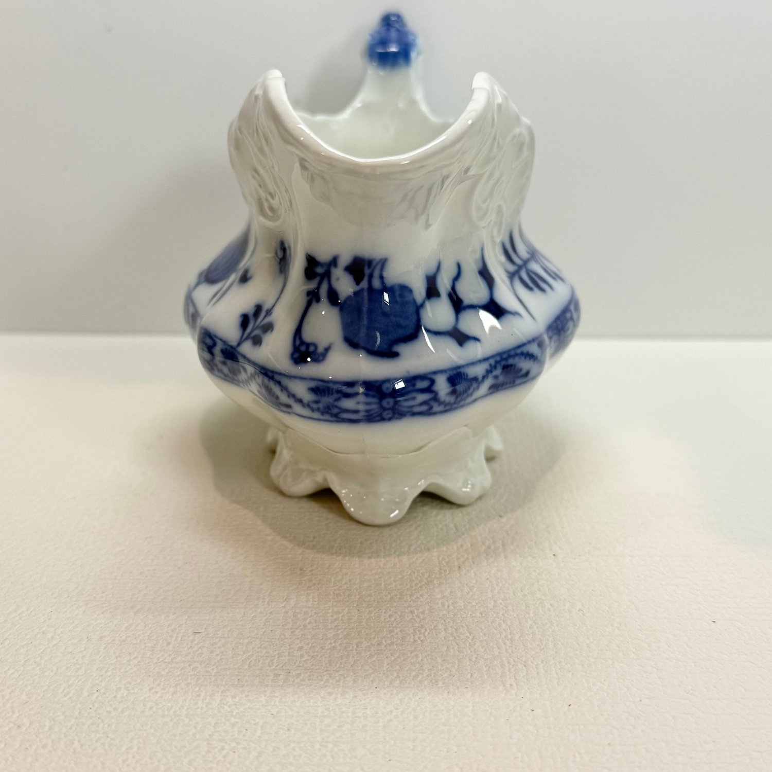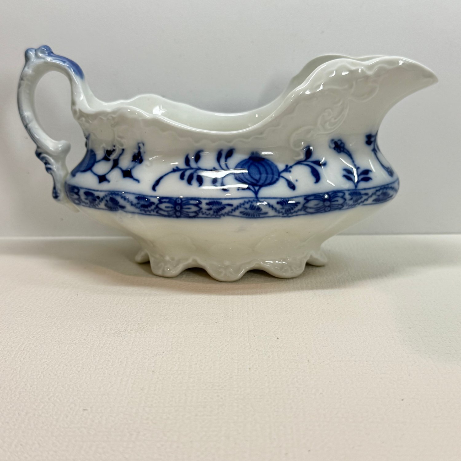 1902 Johnson Brothers flow blue onion porcelain gravy boat.