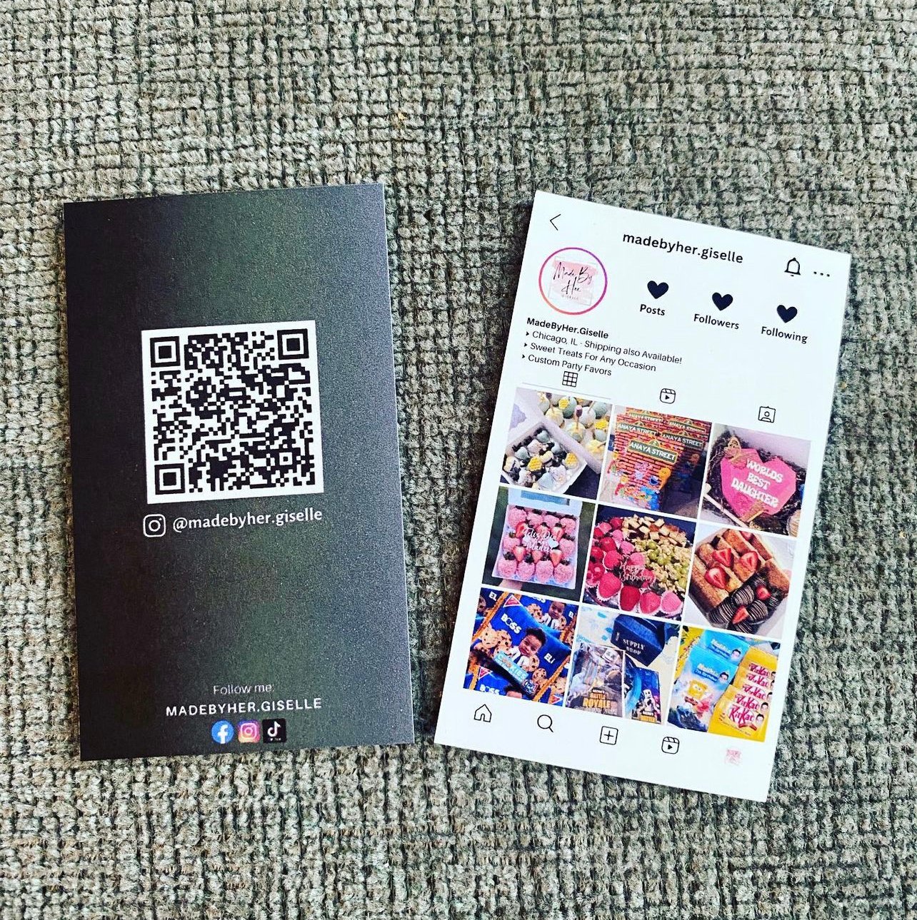 This is a customized template business card made with the viral Instagram look with a free QR code! We customize the business card for you and you will be given the template for printing that you can take to any printing shop such as OfficeMax for printing.