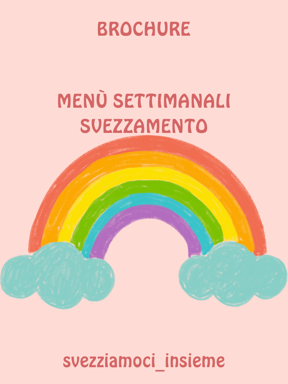 In questa brochure potete trovare 4 esempi di menu settimanali (ovvero 4 settimane) di spuntino, pranzo, merenda e cena! Per poter prendere spunto su come alternare i pasti al vostro/a bimbo/a!