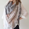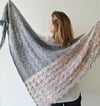 Hanami Shawl is an asymmetrical shawl worked sideways from a tip to its widest point featuring a budding twigs pattern and delicate lace edge. Short repeats in the lace section divided by main colour offer a great opportunity to use up mini skeins, gradient colourways or leftover yarns.