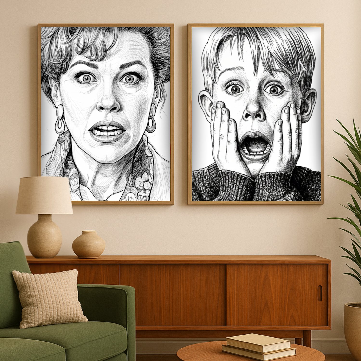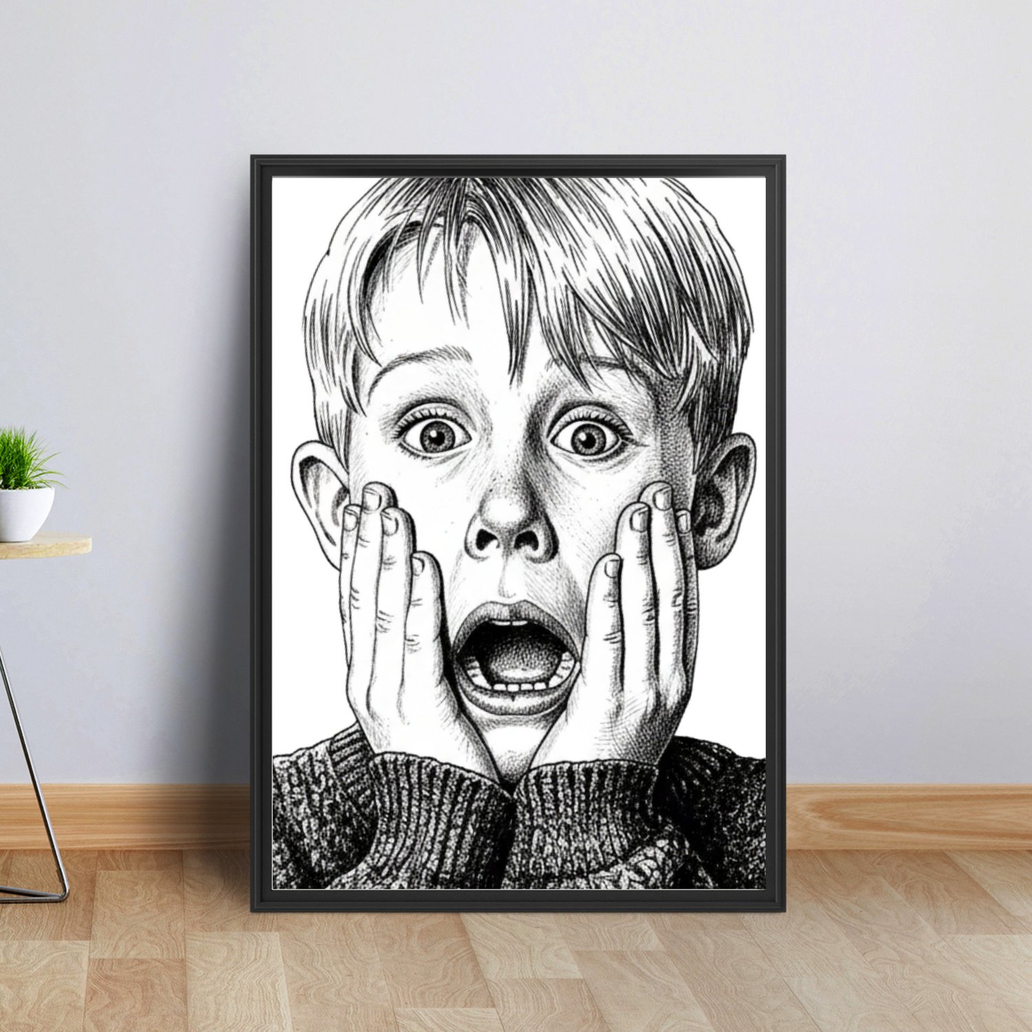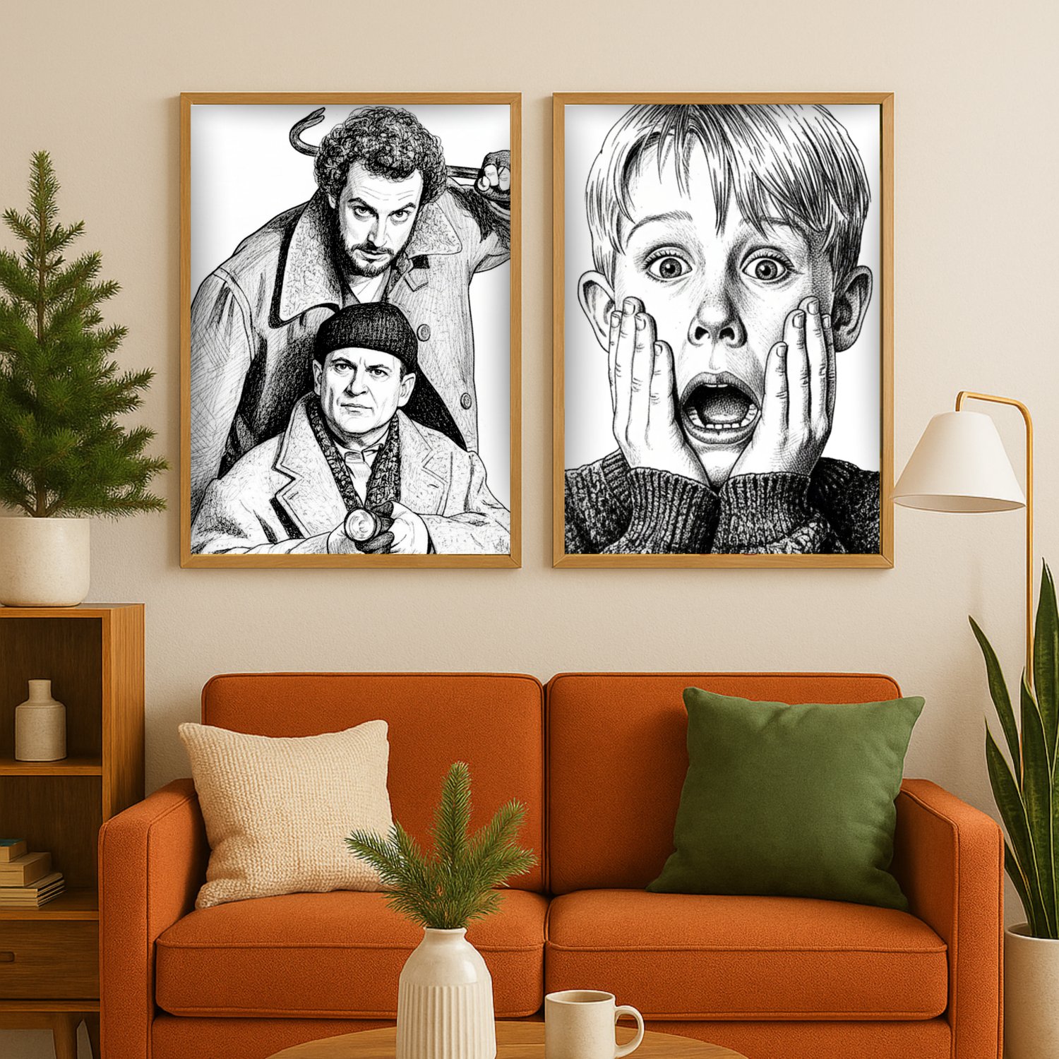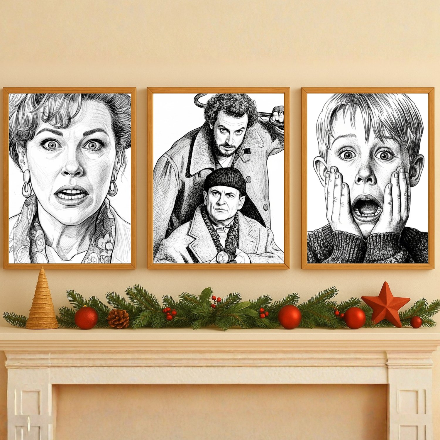 Create a nostalgic Christmas atmosphere instantly with this set of 3 illustrated Home Alone–inspired holiday posters. Designed in a stylish black-and-white retro look, these prints bring cosy ’90s Christmas energy to any room — perfect for gallery walls, holiday parties, kids’ spaces, and festive home styling.