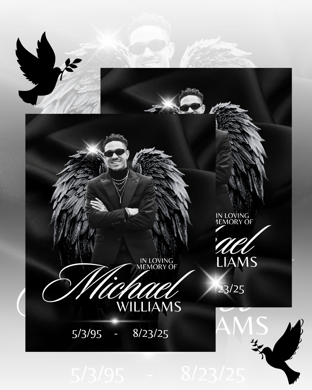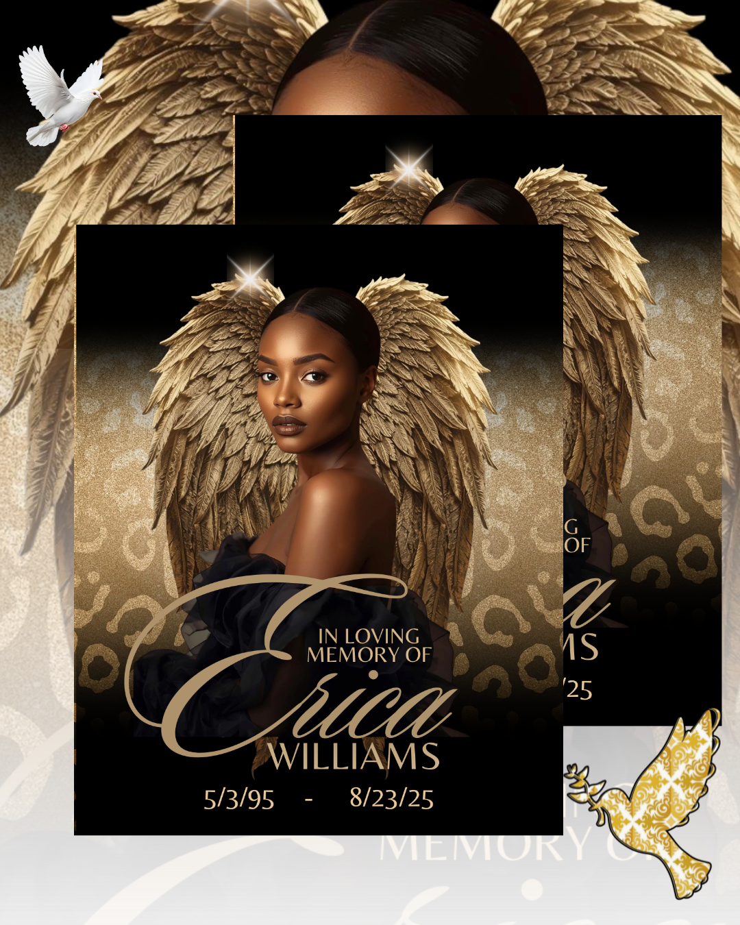 Honor your loved one with this Editable Memorial Design Bundle, featuring four fully customizable templates in elegant and bold styles: Black, Red, Gold, and Animal Print. Perfect for funerals, memorials, and celebration of life services, this bundle gives you versatile design options to create a beautiful and meaningful tribute.