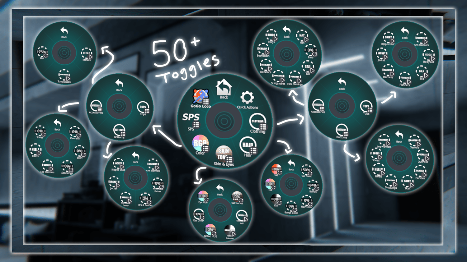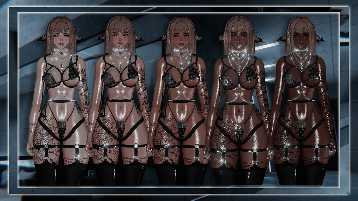 - Ears, Tail, Glasses, Piercings, Hat, Necklace, Body chain.