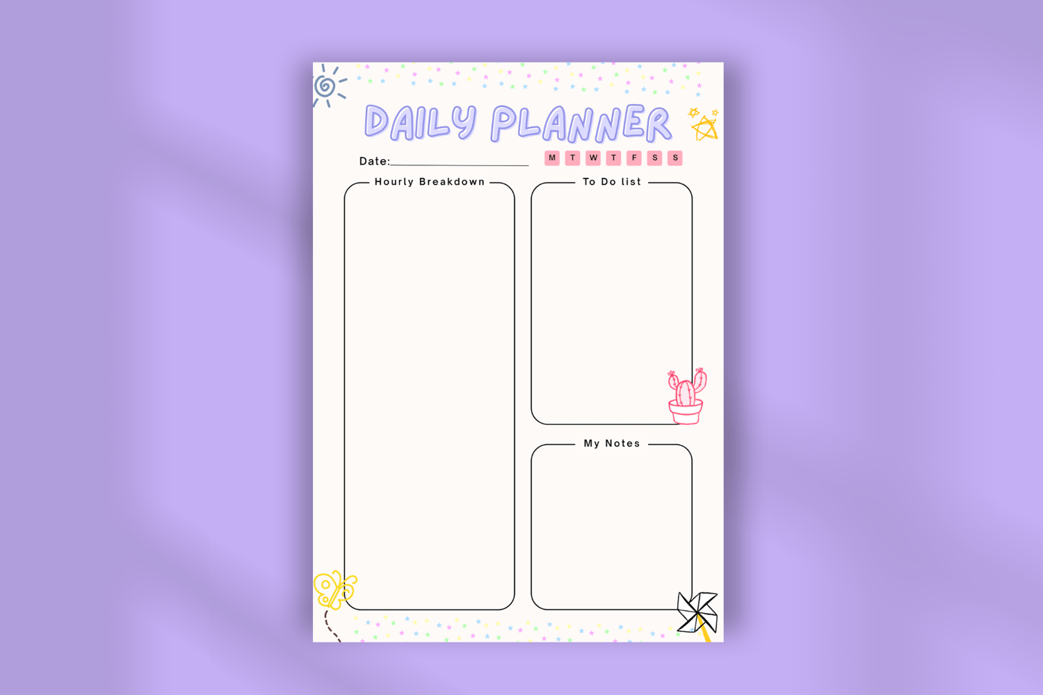 💖Perfect for printing at home or using in your digital planner. Whether you're a student, content creator, or planner enthusiast, this kawaii aesthetic daily planner helps you stay productive while enjoying cute visuals.