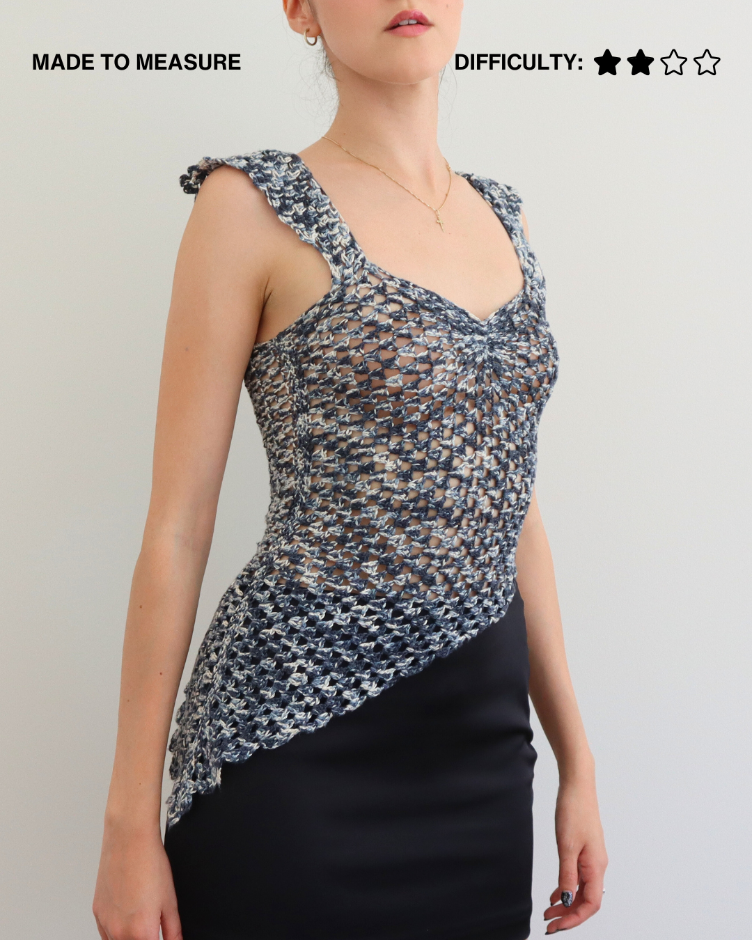 The Sorrengail Top is a powerful, dainty, and fierce garment — inspired by Violet Sorrengail’s dragon scale armour from the book Fourth Wing — made using a decreasing pattern of granny stitches (perfect for beginners ready to challenge themselves). It is made to measure, guaranteeing a customized fit! This top is stretchy, form-fitting, and extremely breathable — perfect for movement!