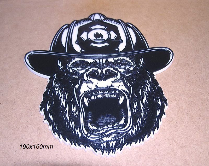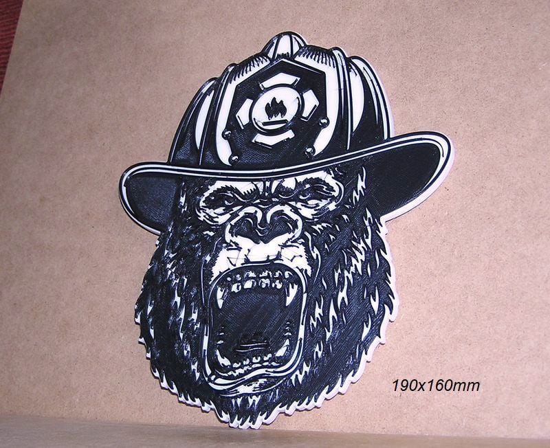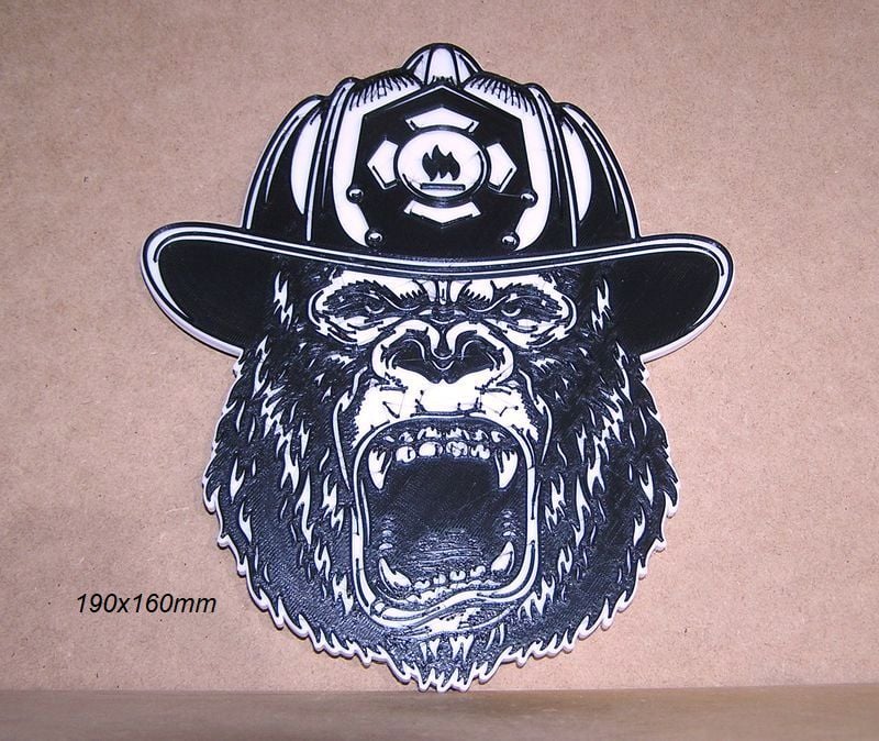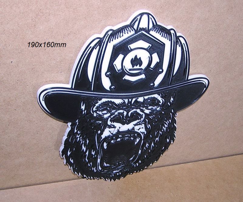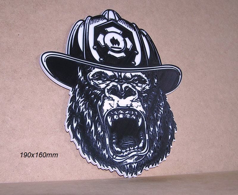 Poster, gorilla logo firefighter helmet, these STL and Gcode files have been created to be printed in various colors with any FDM type printer. The color changes have been made with the Elegoo Neptune 3 Pro printer, but they can be printed on any printer.