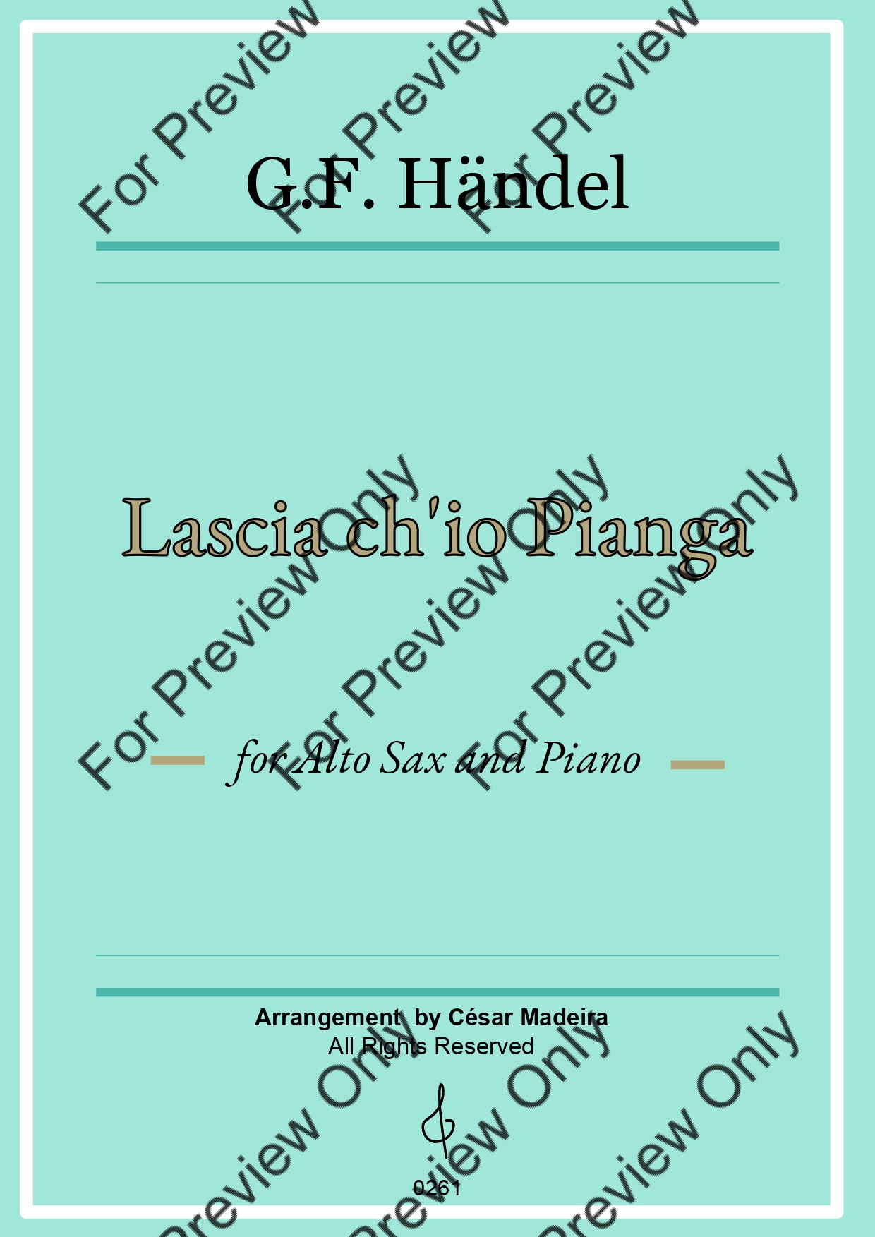 Lascia Ch'io Pianga by Georg Friedrich Handel. Arrangement for Alto Sax and Piano. With Full Score and Individual Parts. Have fun!