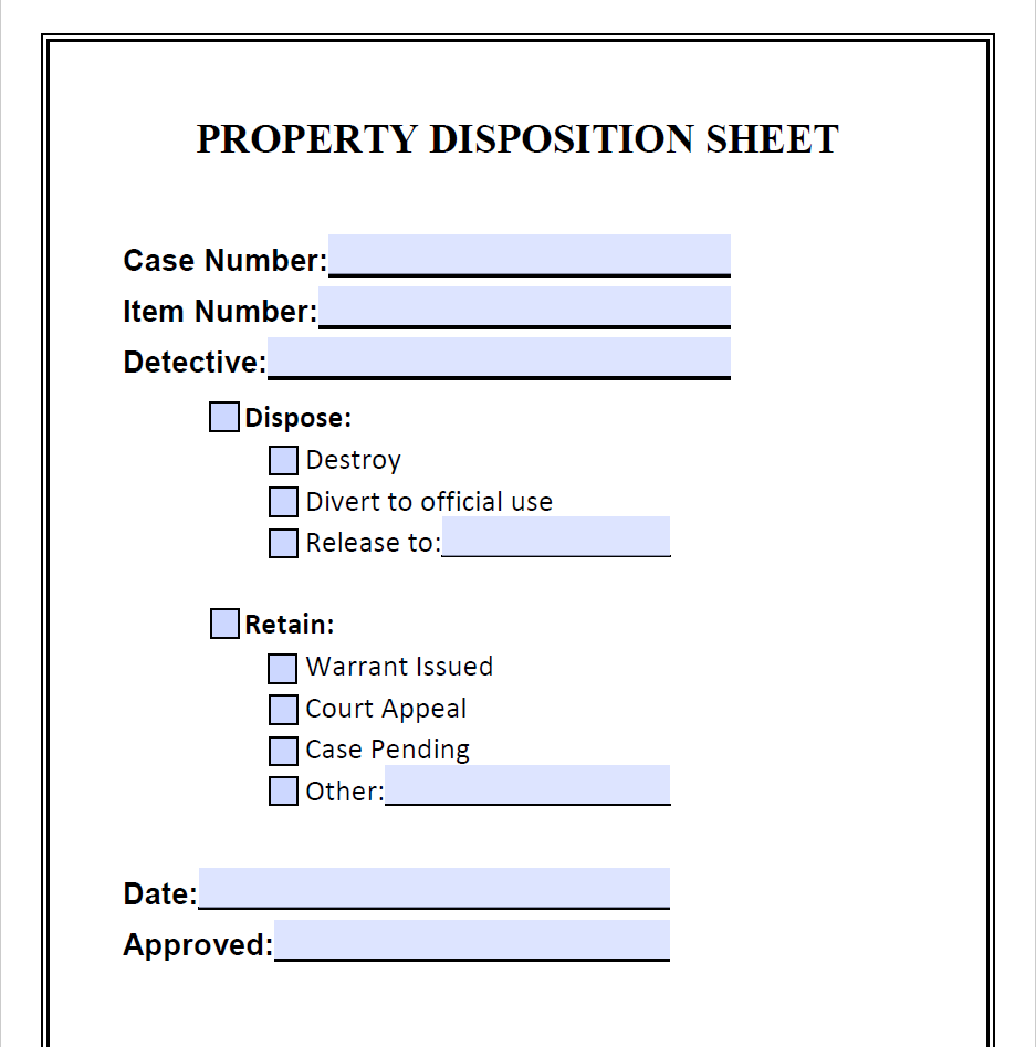 Free template of the Property Disposition Sheet. There's nothing like a free resource that can make your job easier.
