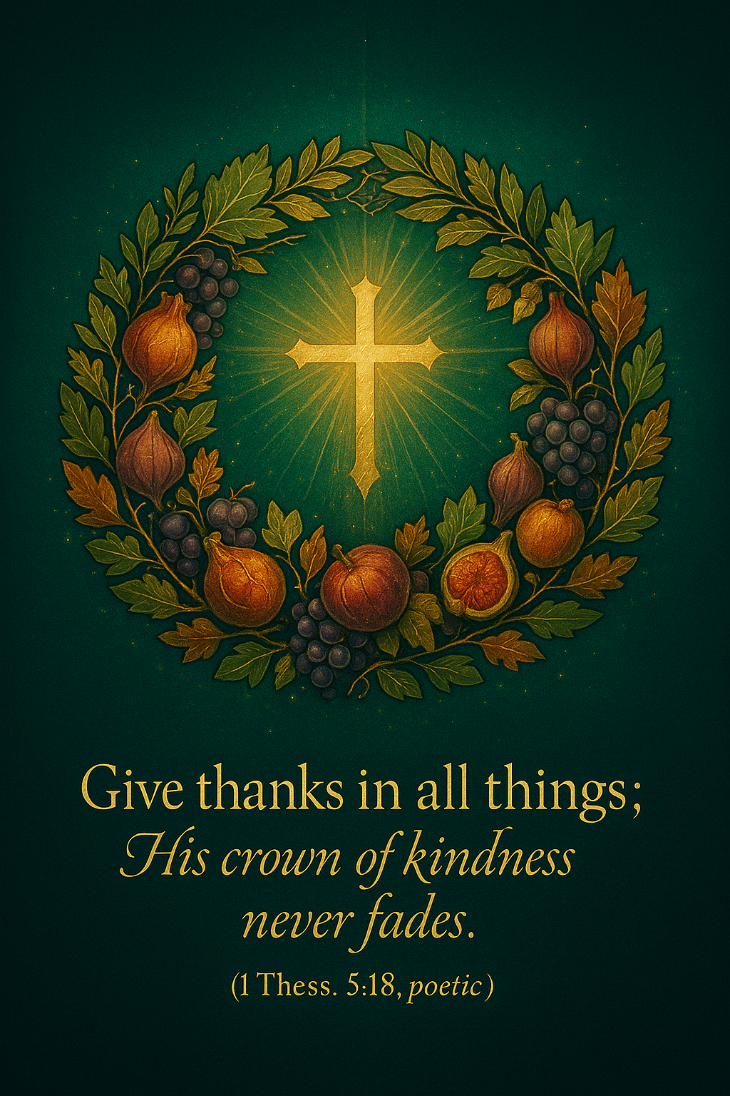 “Give thanks in all things; His crown of kindness never fades.” – 1 Thessalonians 5:18 (poetic)