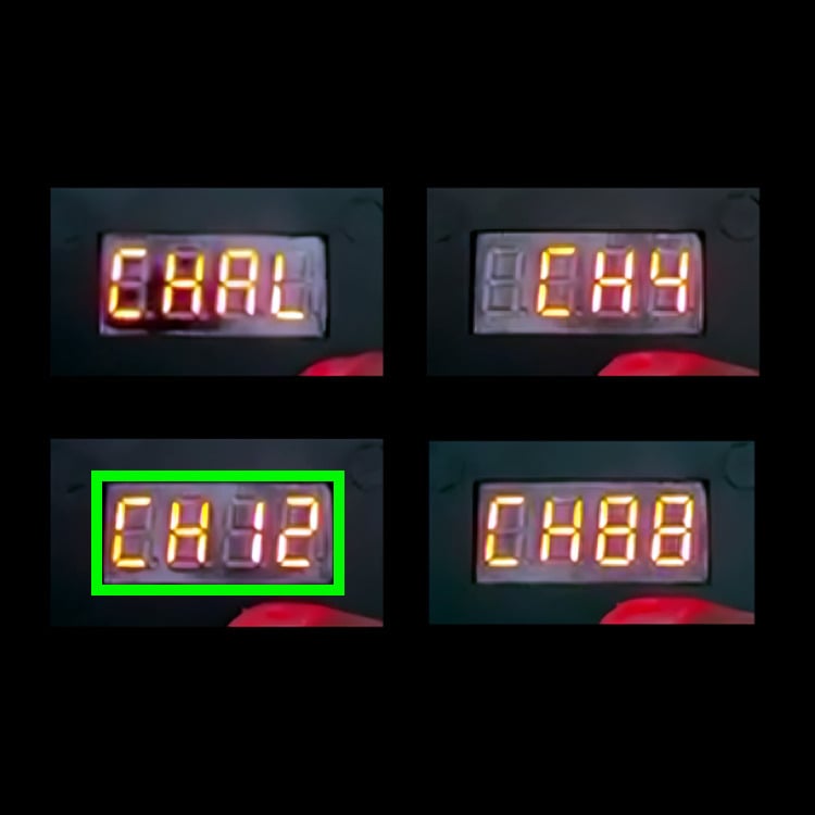 * Verifique, desde el display del equipo, que el menu "CHAL" muestre los modos "CH4", "CH12" y "CH88" (tercer foto).
