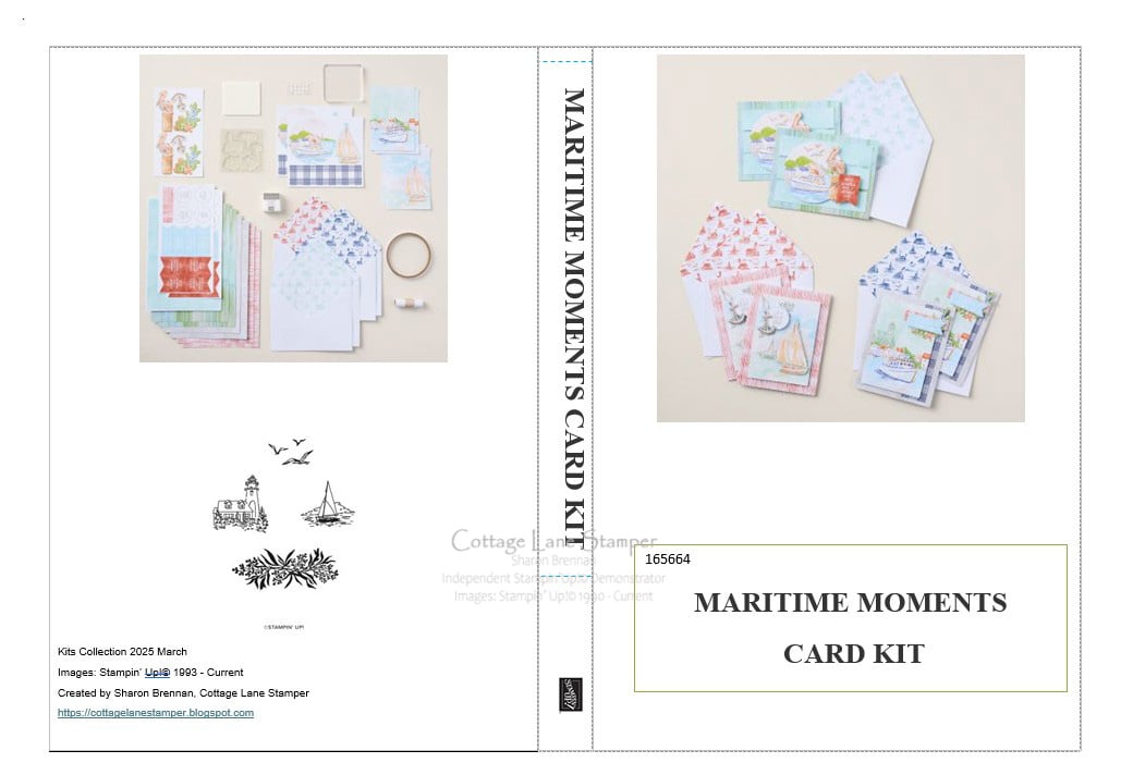 A printable case insert, in PDF form, for your "Maritime Moments" Mar. 2025 card kit from the Stampin' Up! Online Kits Collection. Great for storing your stamps and extra pieces.