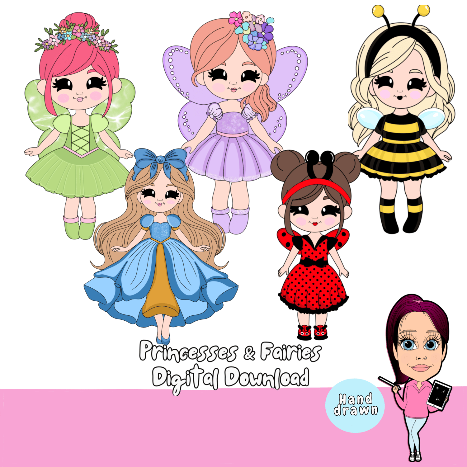 Instant download of our cute princesses & fairies clipart includes 10pngs