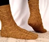 Step back and trace the lines. Whether it is a tall building, suspension bridge, mosaic tile, or even stained glass. These are the lines that inspired the Pastiche socks. This pair of cuff down socks have an all over cable that leads to a decorative heel. This pattern is so enjoyable and engaging that you won’t have second sock syndrome.