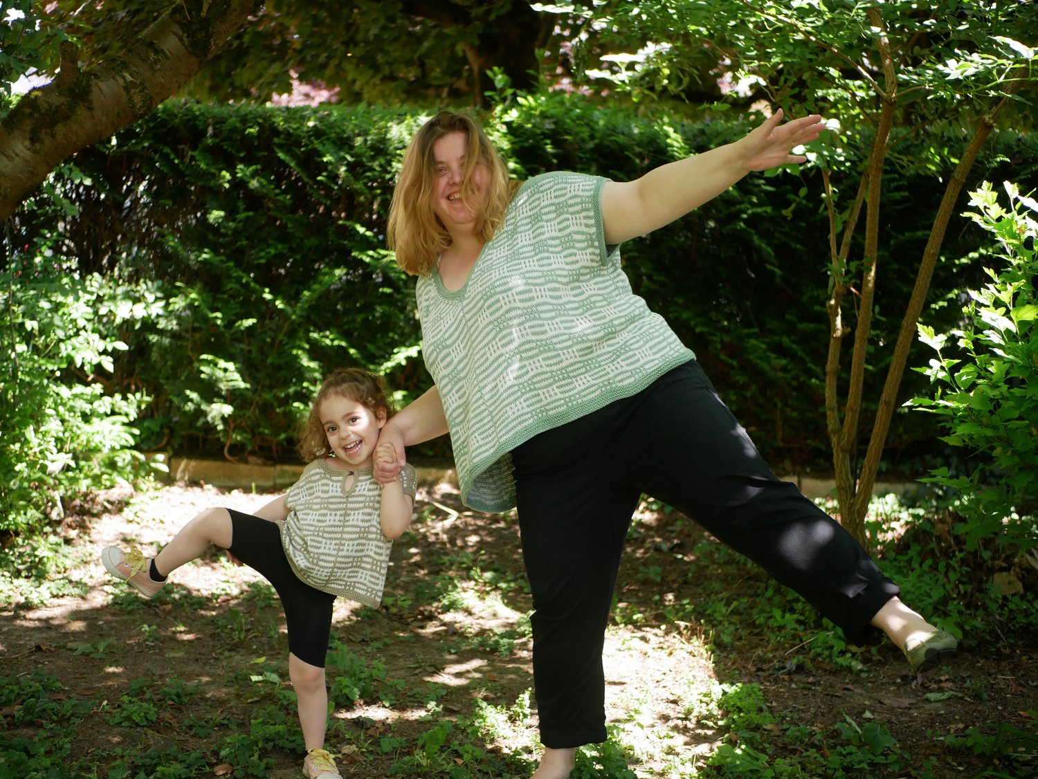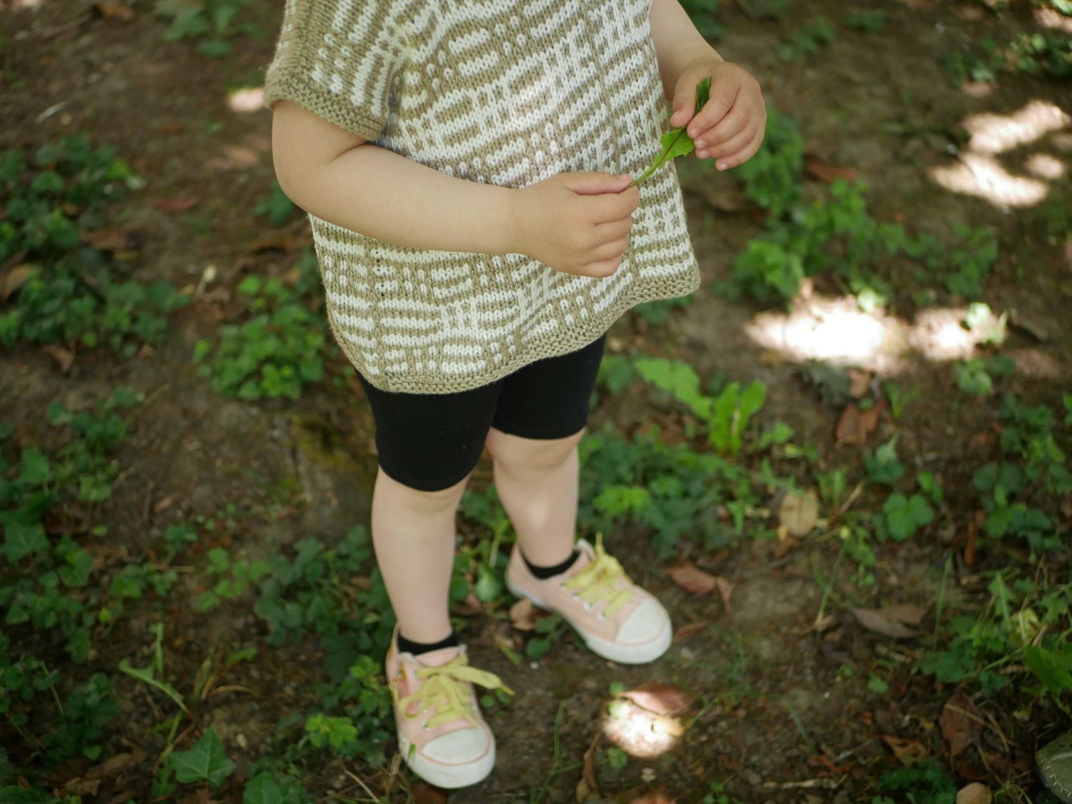 de les rabattre à trois aiguilles plus tard. Puis on tricote le corps en rond. Quelques finitions au point mousse aux emmanchures et à l’encolure, et voilà un T-shirt vite fait bien fait.