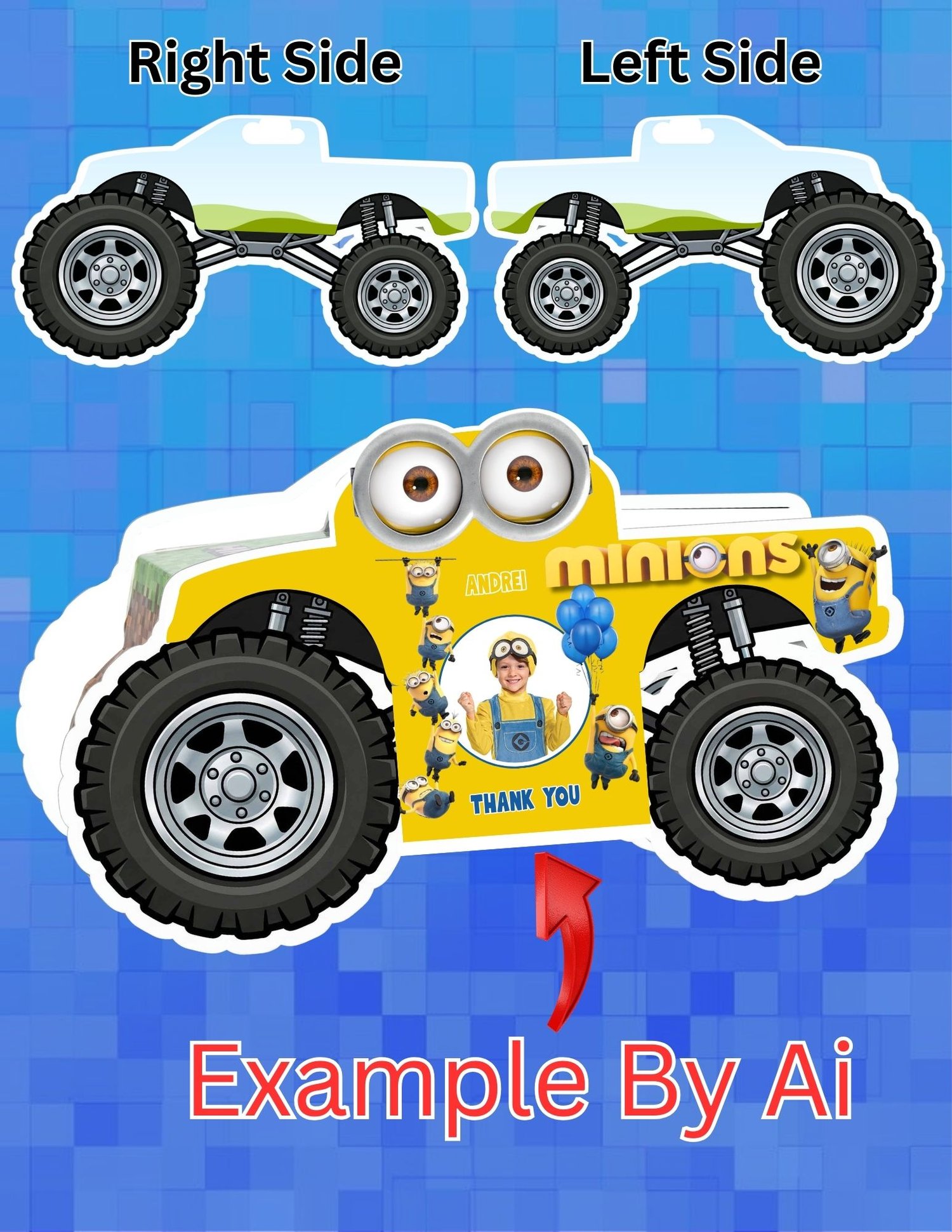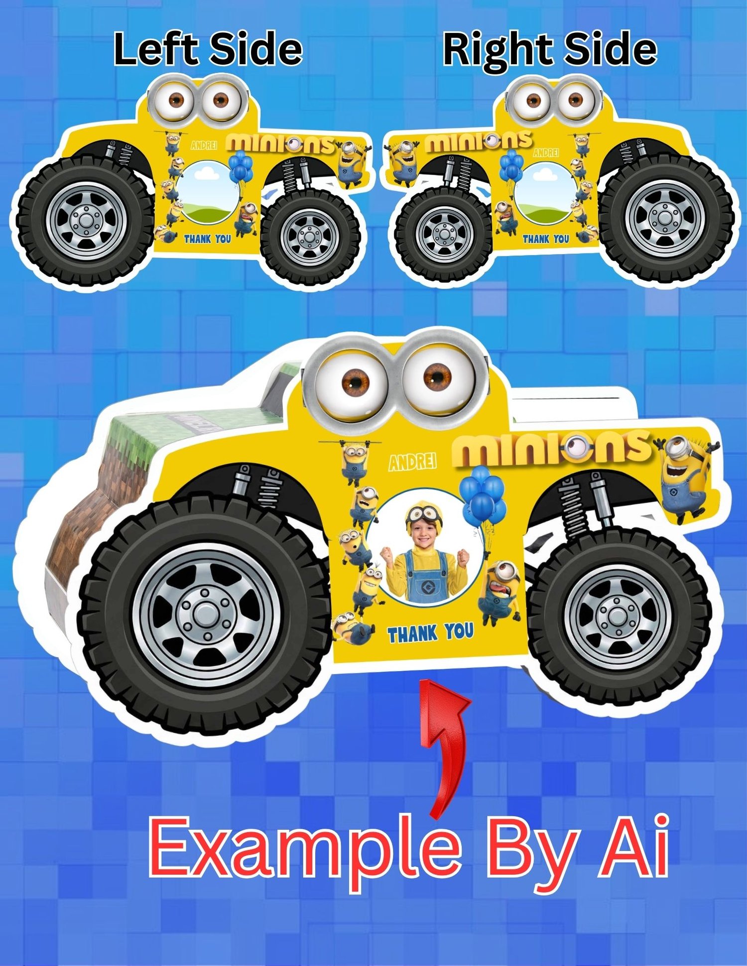 Big wheel Truck Gift Box Template | Minions theme | Printable in (19x13) (11x8.5)