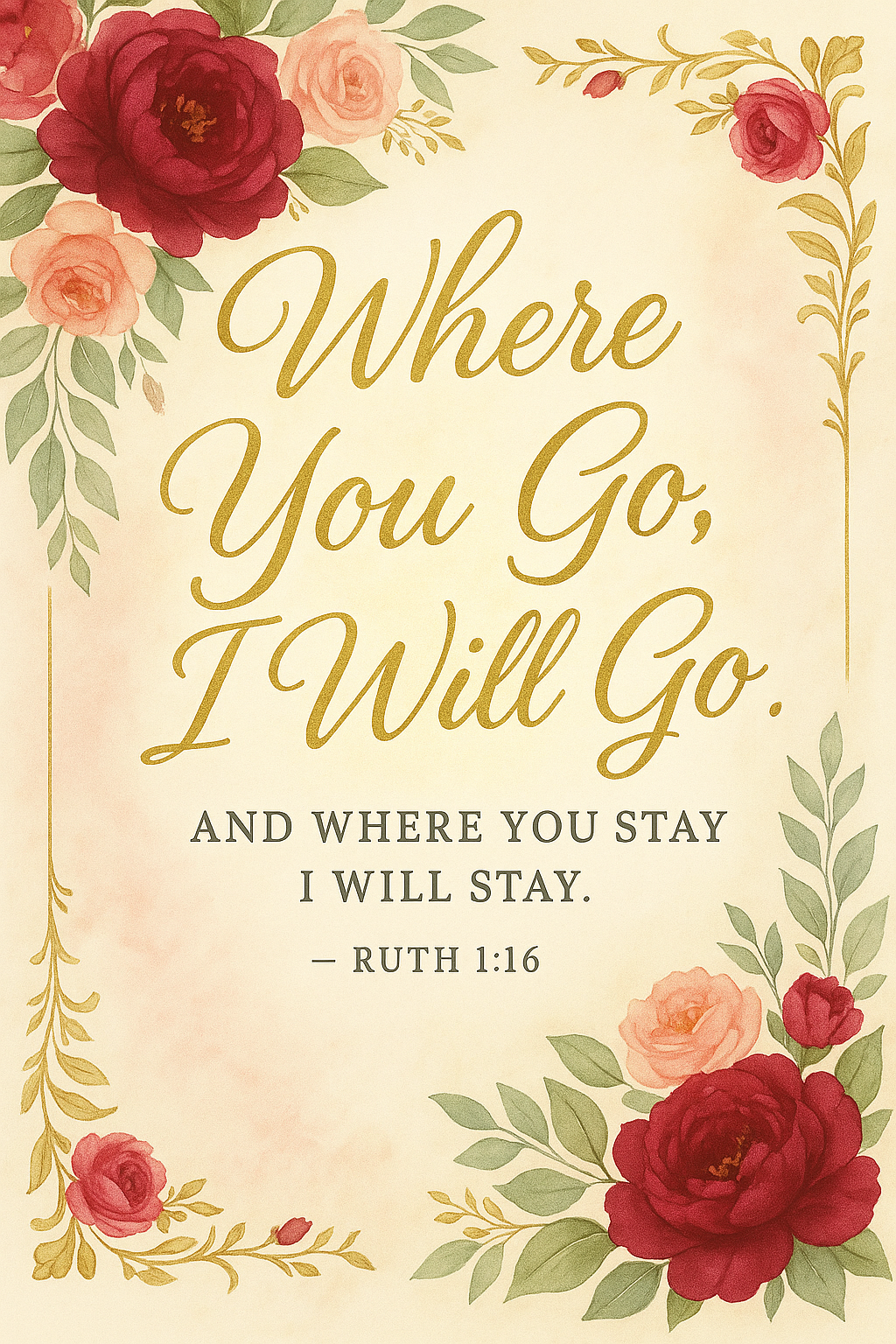 🌸💞 Christian Scripture Wall Art – Ruth 1:16 Floral Poster – Faith-Based Printable for Devotion, Homeschool & Wedding – Loyalty & Love Theme