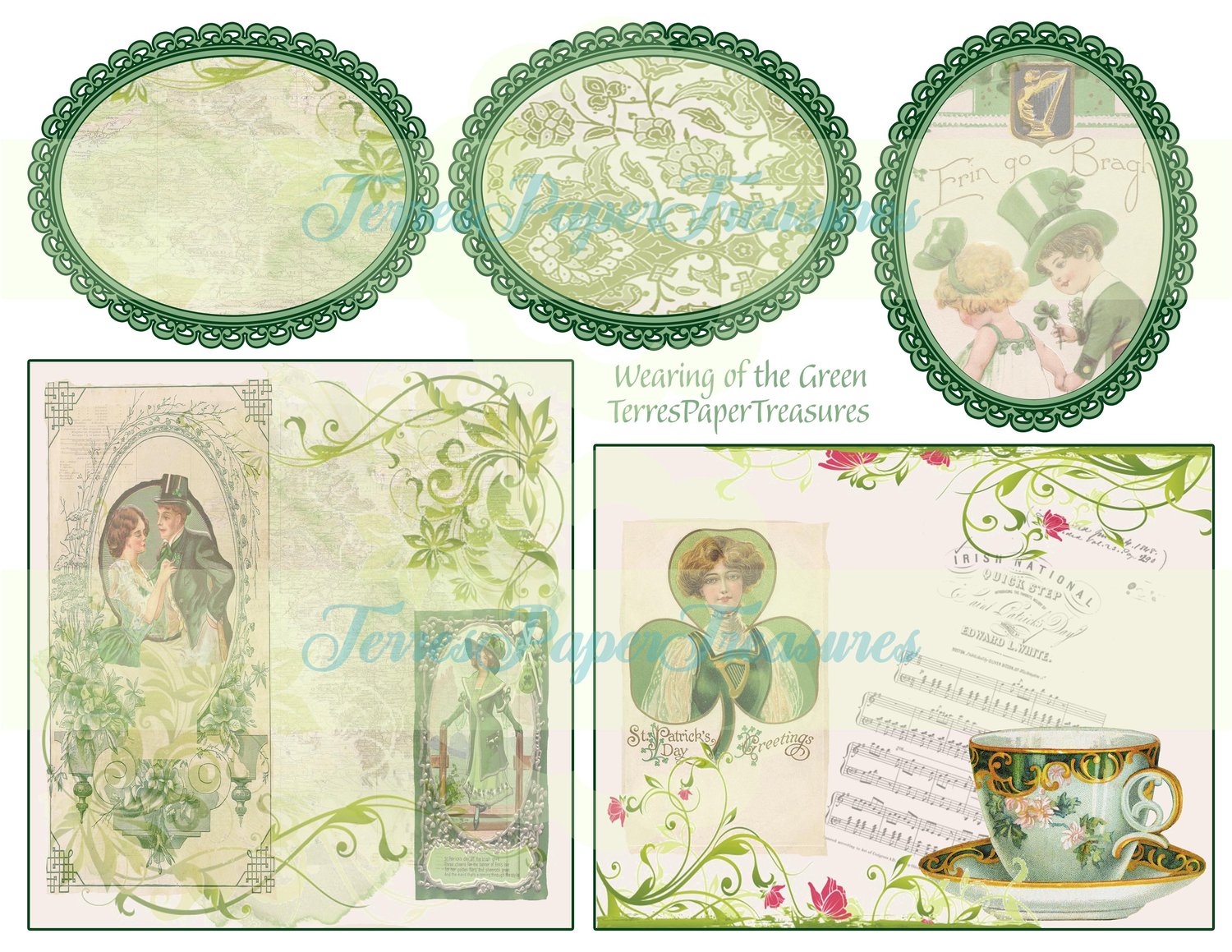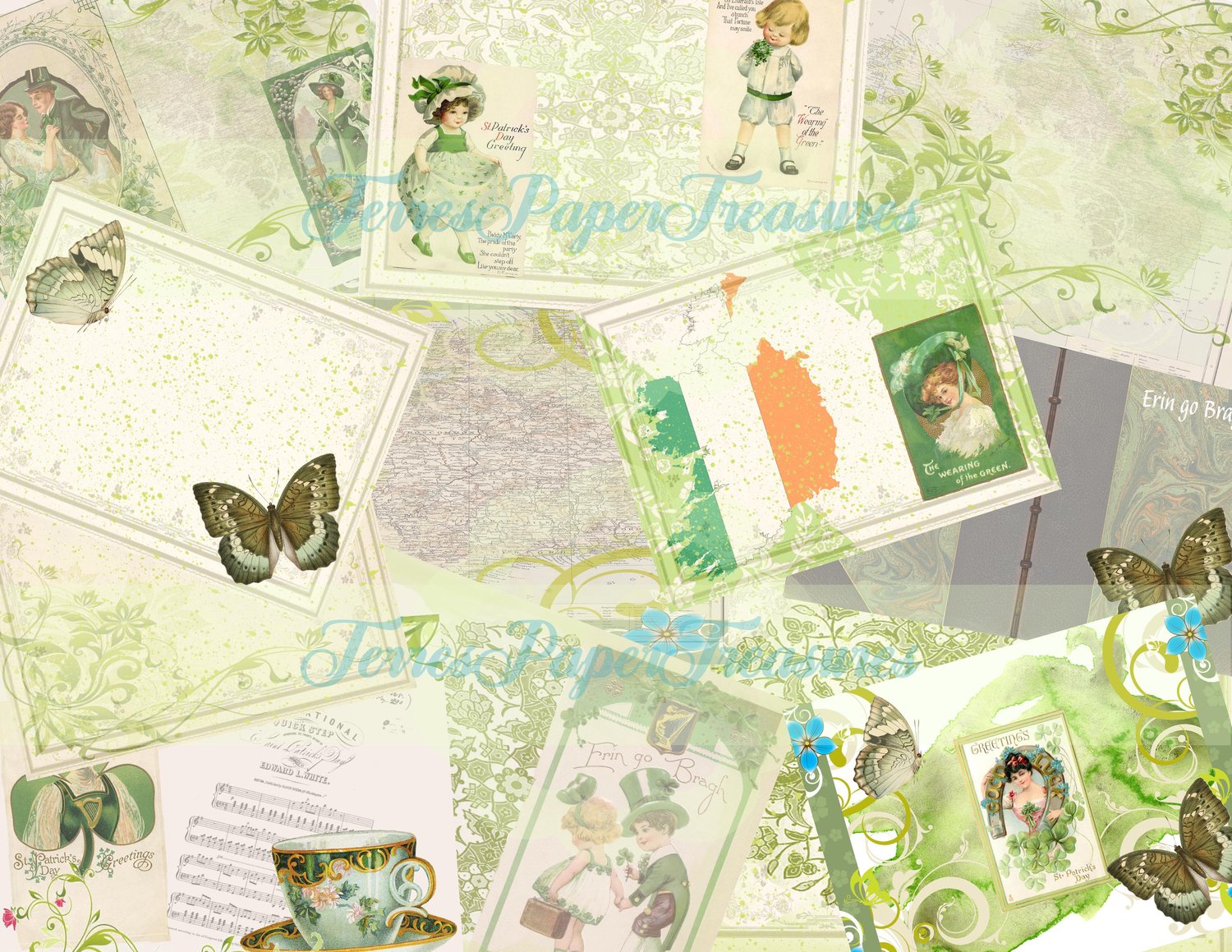 Wearing of the Green makes a great journaling kit for St. Patrick's Day of any Irish theme kit. There are 15 papers total, 6 journaling papers, 6 background pages and 3 ephemera papers including a collage page.
