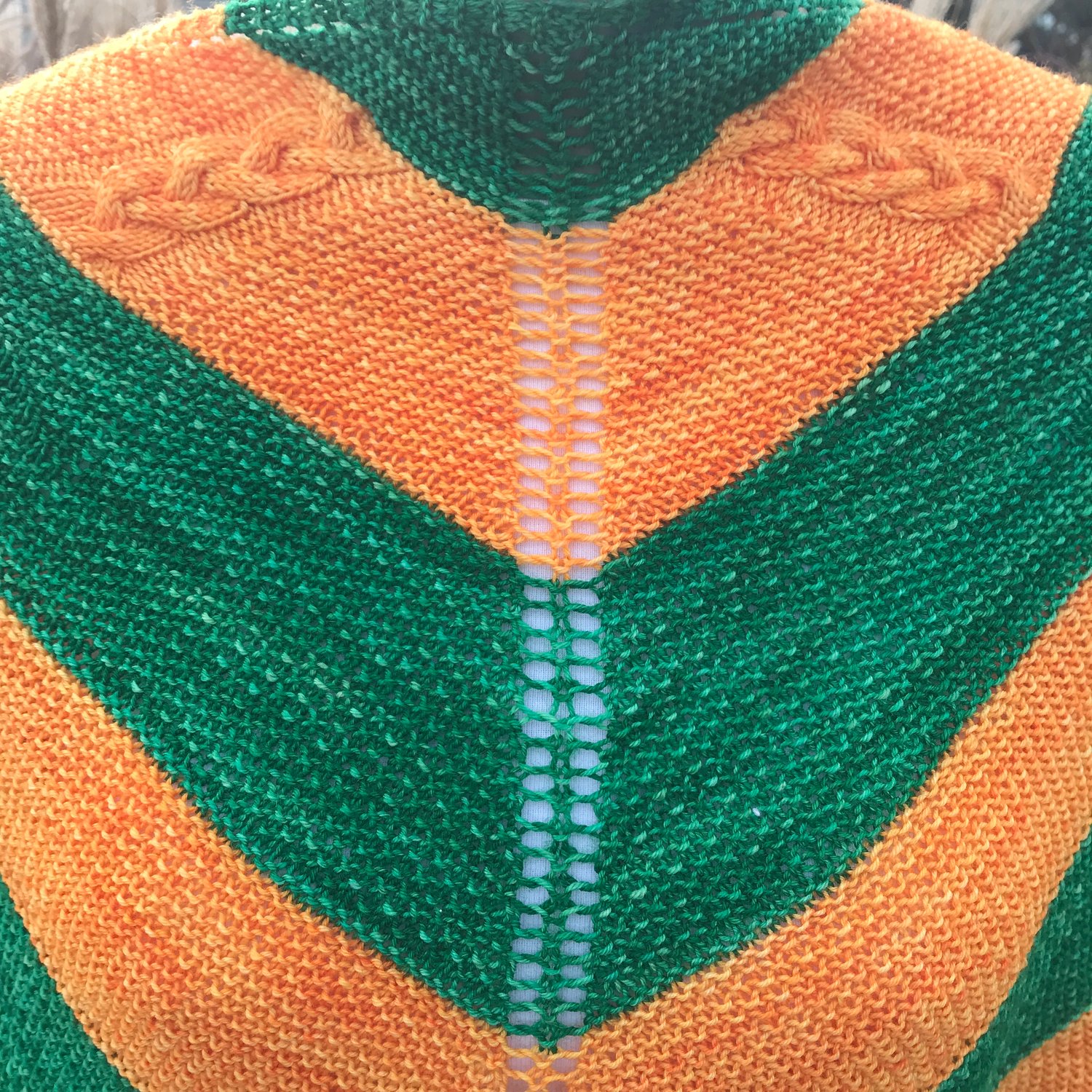 The Design – The Green Gables sections are a textured design that reminds me of the gables of Anne’s Green Gables home. The Carrots sections are cabled braids because of Gilbert calling Anne’s hair “carrots.”