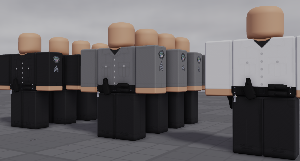 Comes with Uniforms, a configurable belt, configurable vest, and 10 3D ranks