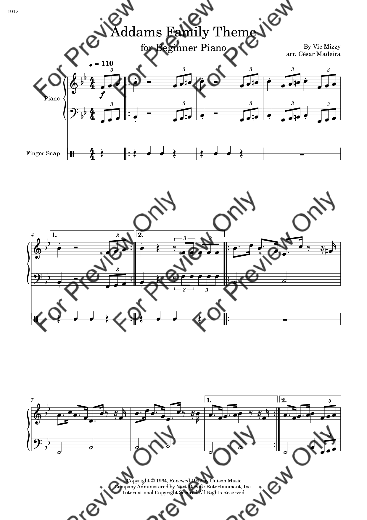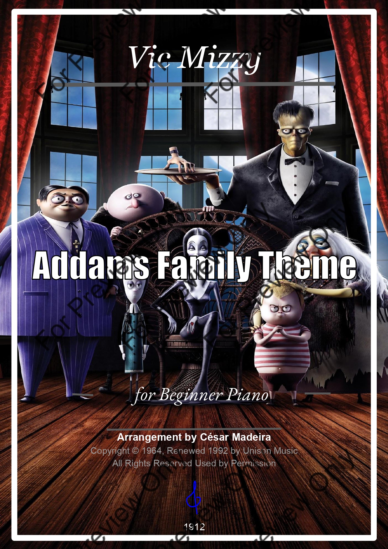 Addams Family Theme. Arrangement for Beginner/Easy Piano. With Full Score. Have fun!