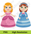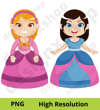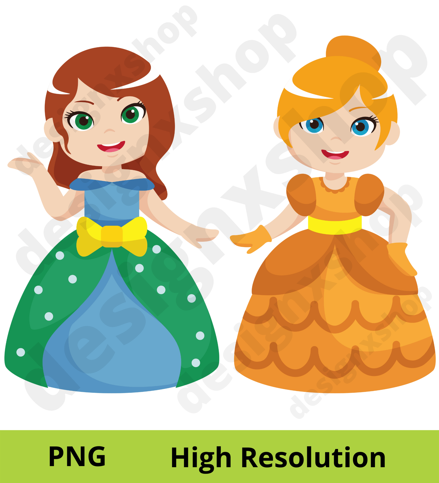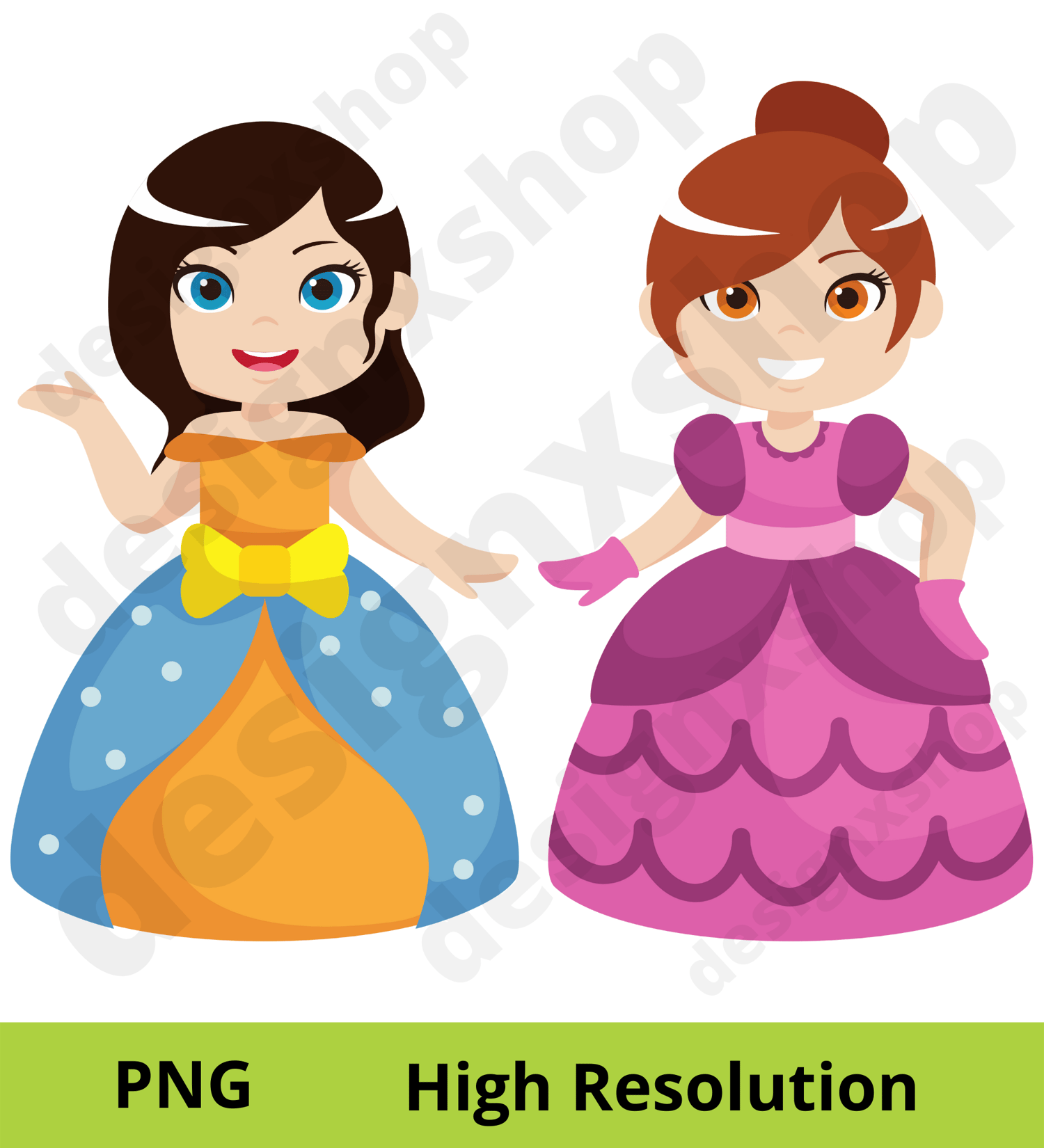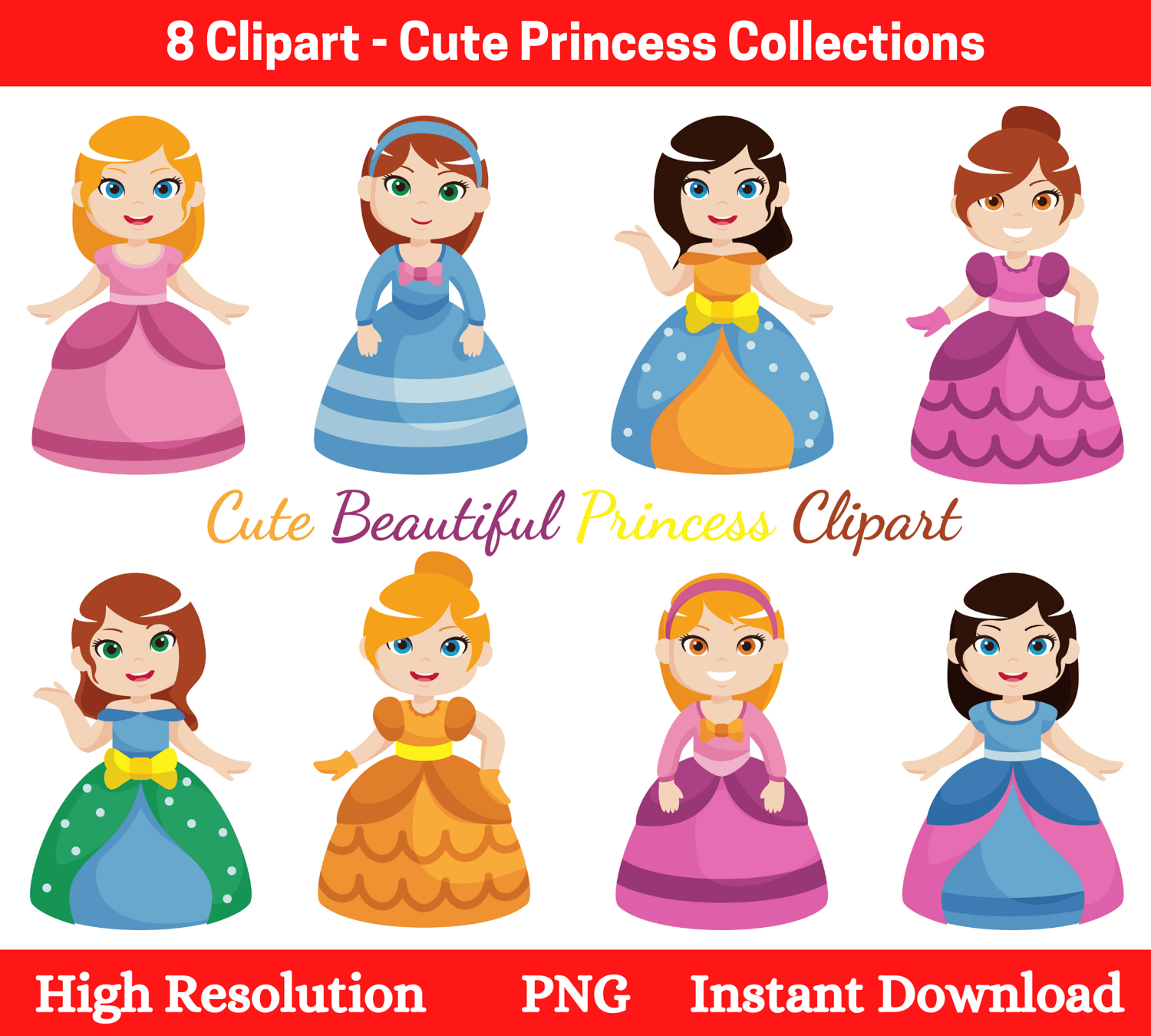 8 Elements Cute Princess Clipart, hand drawn hi-res digital CLIP ART (with transparent background).