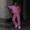 Solid color long sleeved cardigan cap top sports pants two-piece set