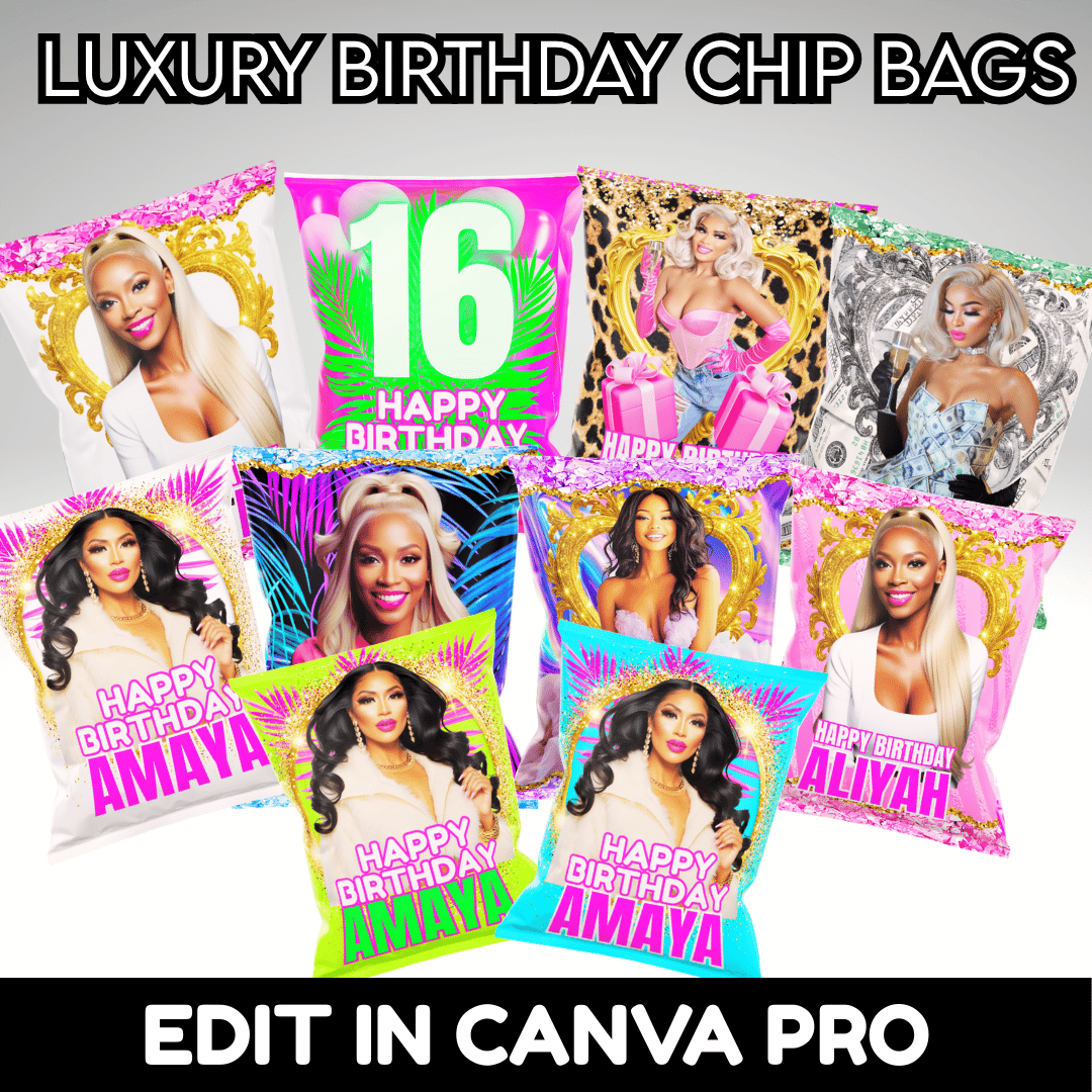 This bundle includes professionally designed Canva templates for the most popular party favors, allowing you to edit, export, and resell the templates as digital files or use them for physical party favors.