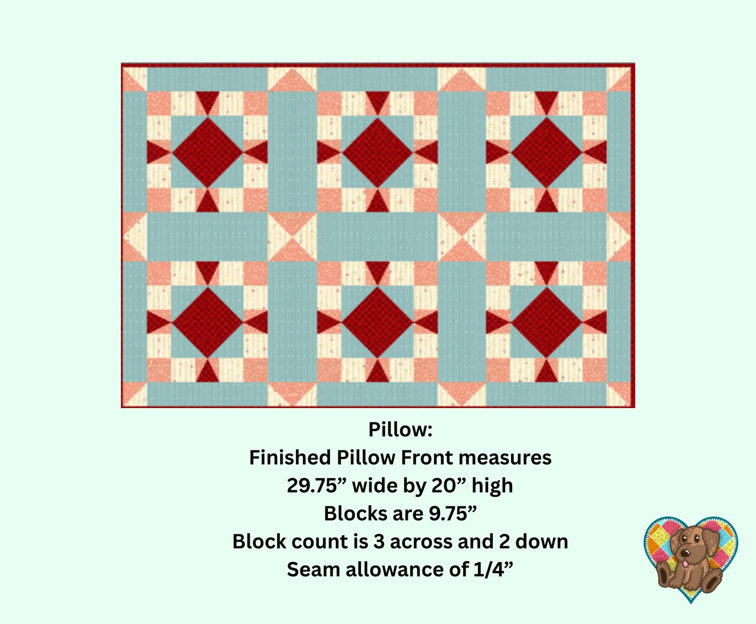 Pillow sham quilt front is 20" X 29.75" Blocks are traditional pieced blocks.