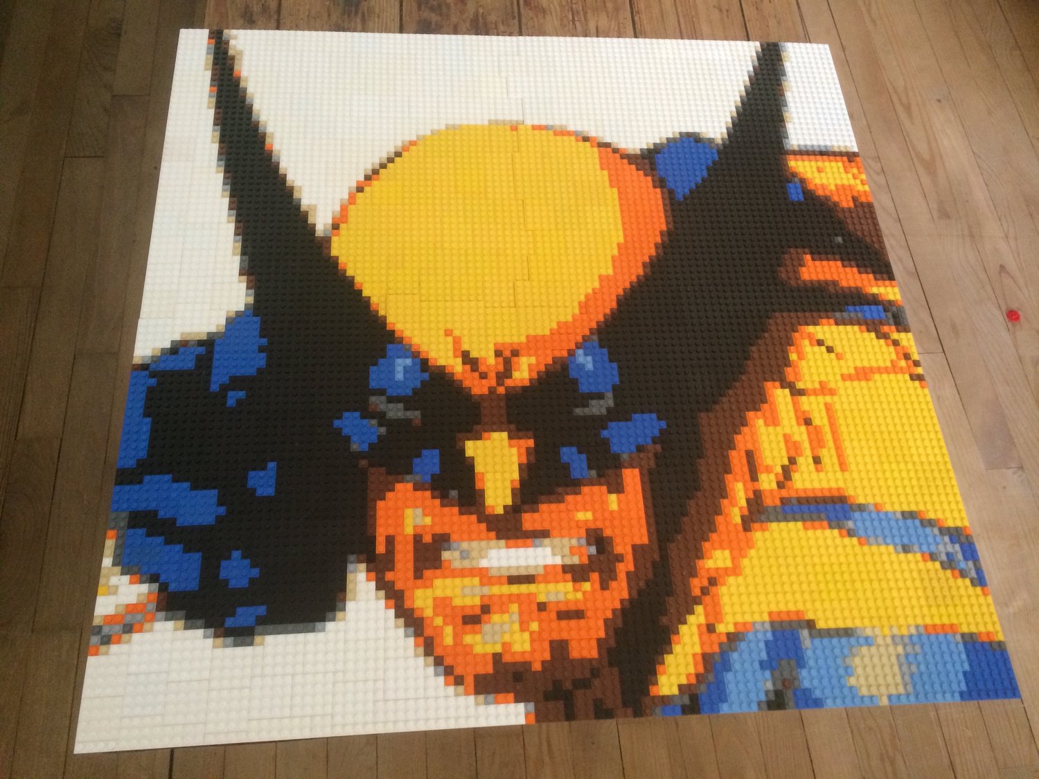An original Brick Art Mosaic creation: Wolverine, hero from Marvel comics, essential member of the X-Men, and its formidable claws!