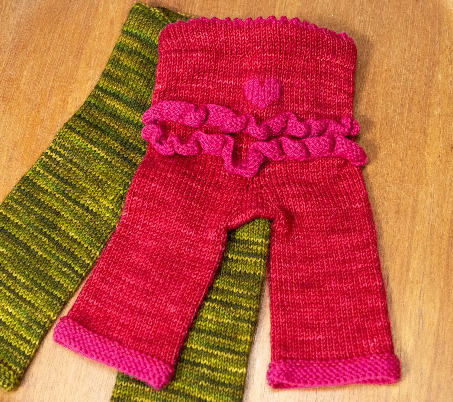 We started out making soakers for the little people in our lives and then found out that these little pants were perfect for babies. The knitted fabric is stretchy and warm and moves in perfect coordination with little legs. These baby yoga pants are custom fit to hold a padded bum and you can make the legs short or long.