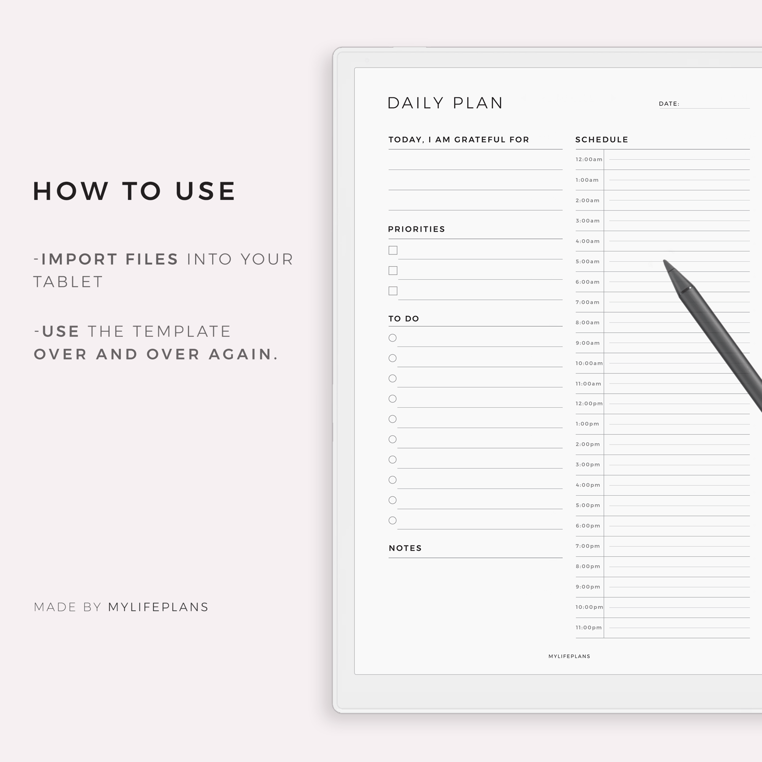 24 Hour Daily Planner – A modern, minimalist template that works seamlessly with a wide range of e-ink devices. Simply download, import, and start using it right away.