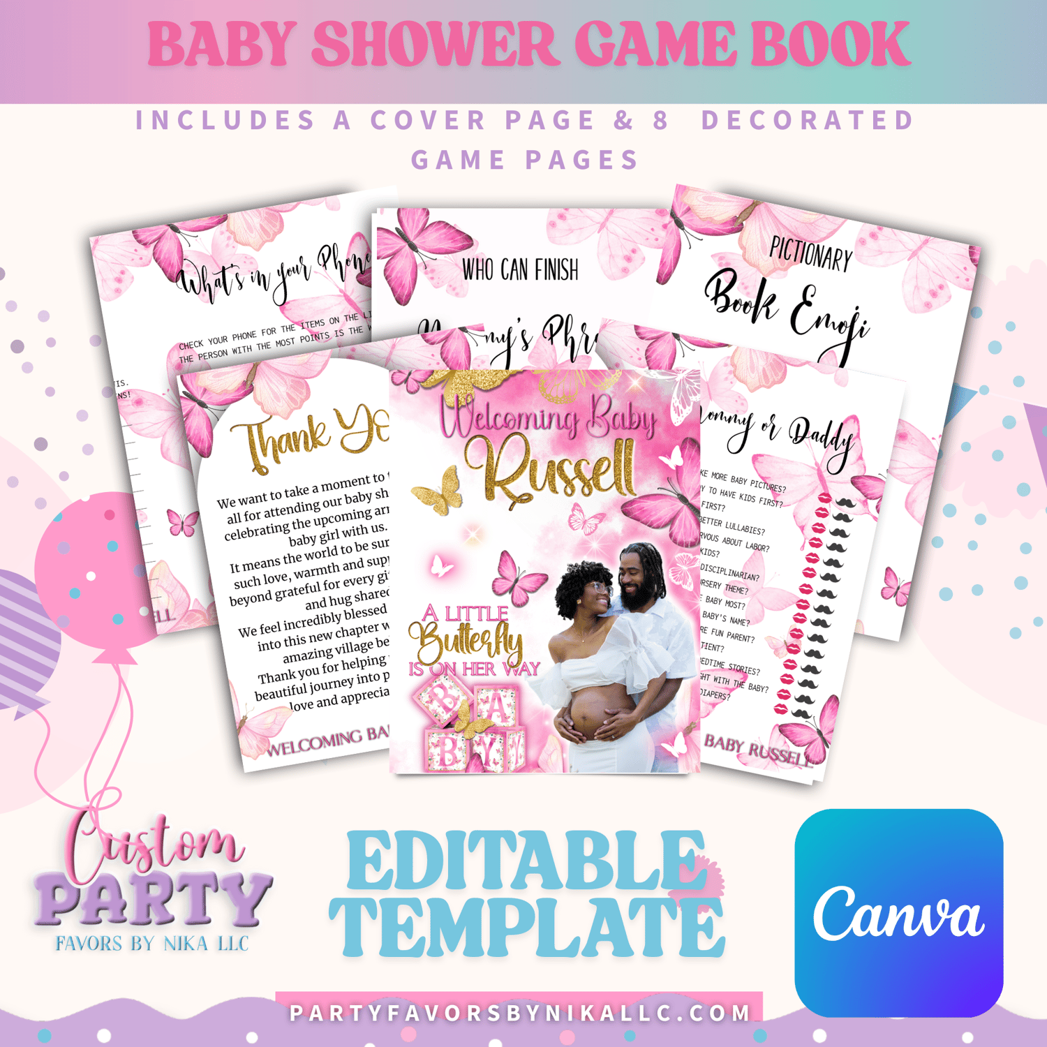PINK BUTTERFLY BABY SHOWER GAME BOOK TEMPLATE