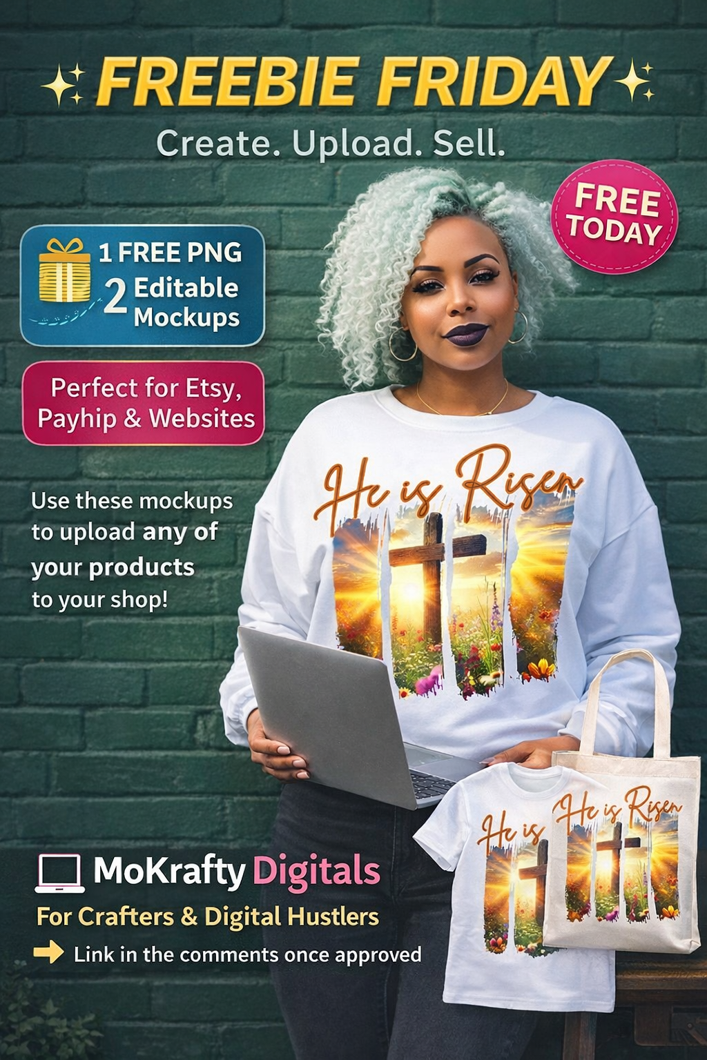 This MoKrafty Digitals Freebie Friday download includes a high-quality PNG design plus two editable product mockups that you can customize with your own designs.