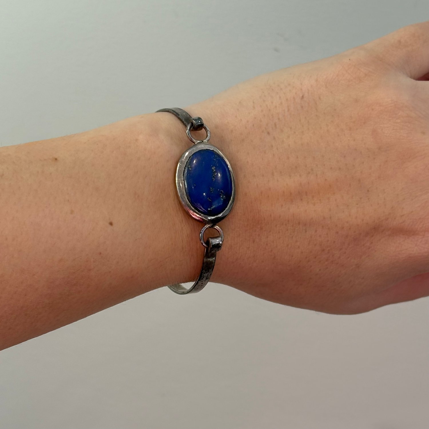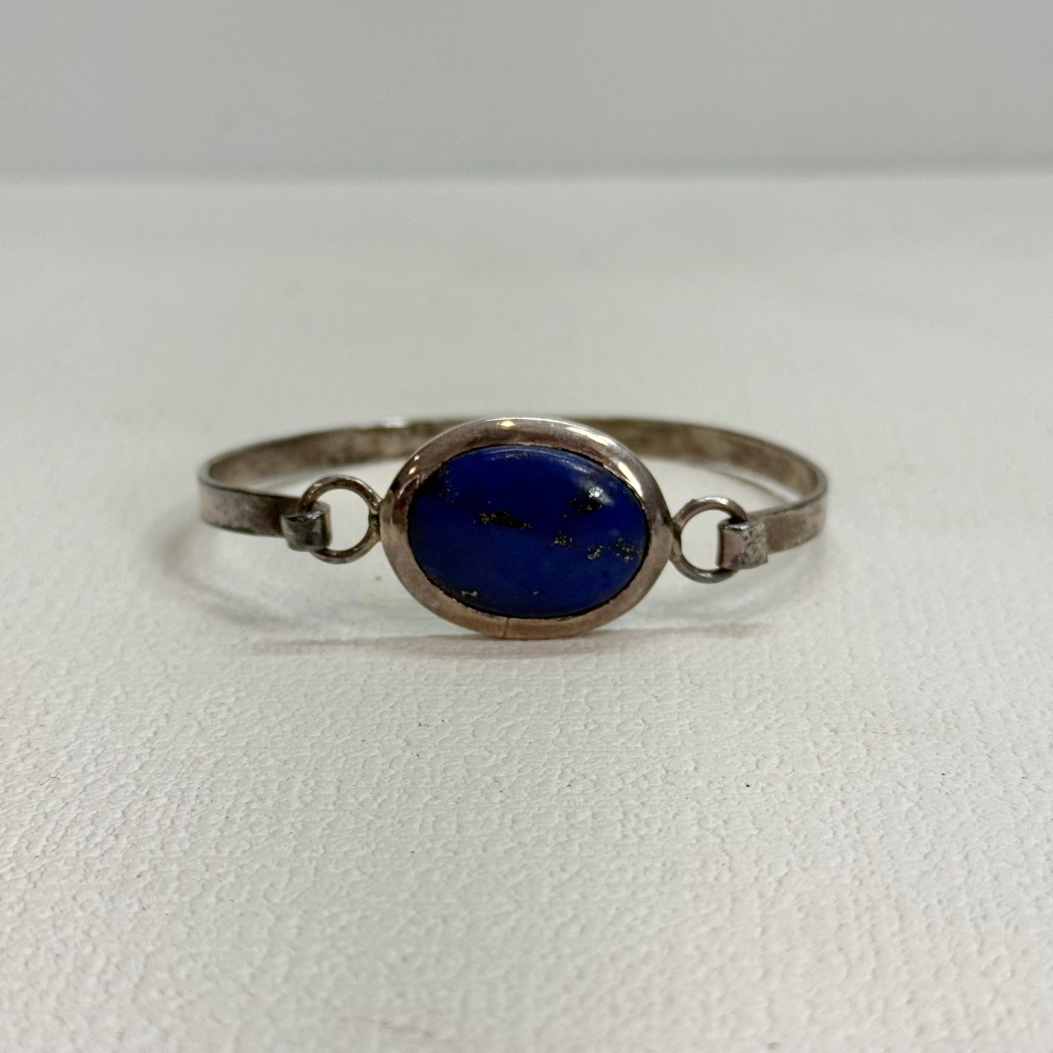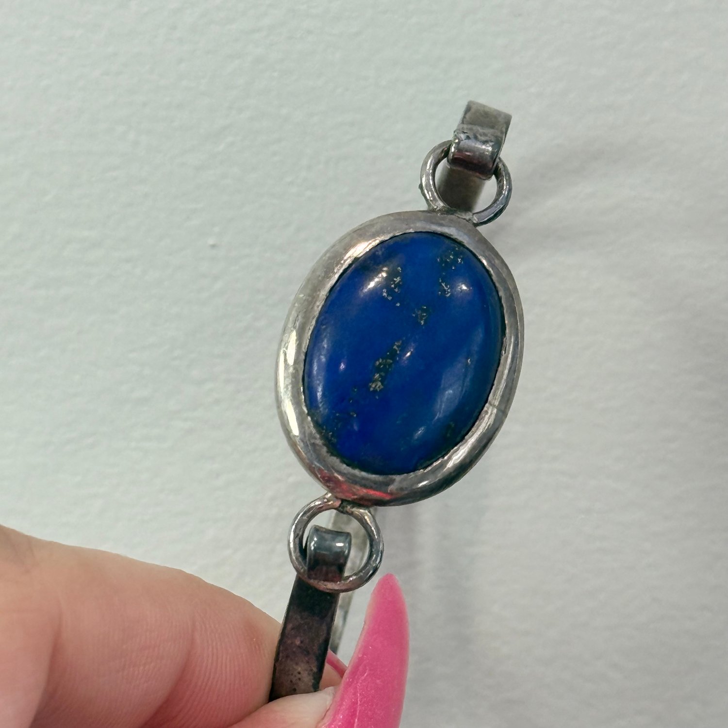 Lapis Sterling Silver bracelet. One end unhooks to put on your wrist.