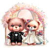 Teddy bear wedding couple, 3 ready made files; bride and groom, bride and bride, groom and groom plus bride, groom & accessories. 8 brides, 3 grooms, 2 dresses in 4 colours, 3 suit colours, Background. Sublimation, print