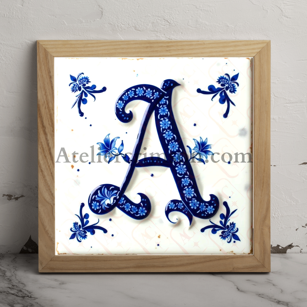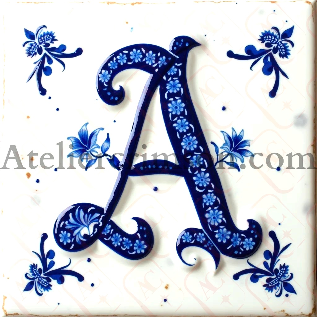 The letter A delftware blue tiles Download Now this high quality AI-generated image, perfect for adding a touch of tranquility and creativity to any space.