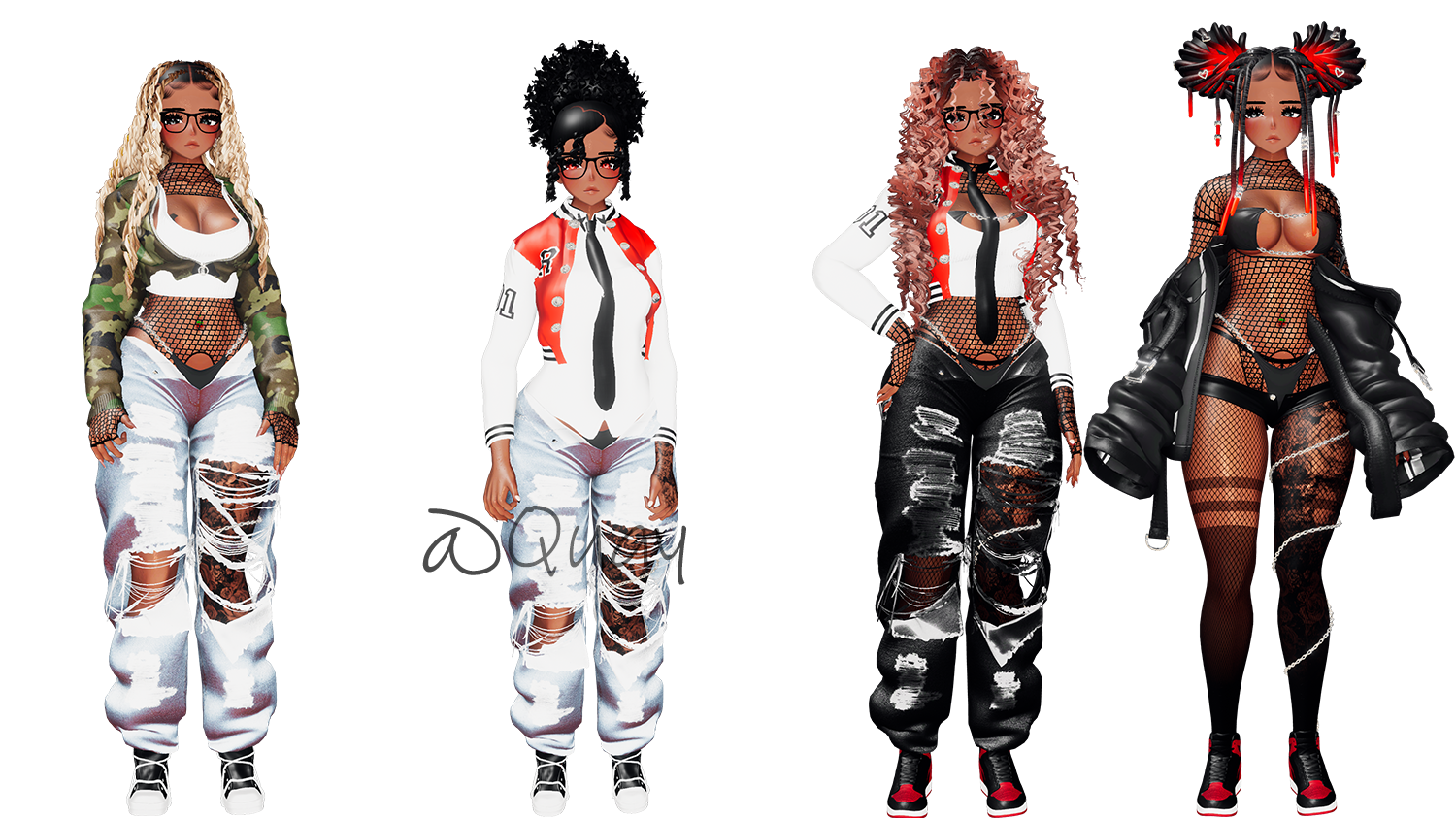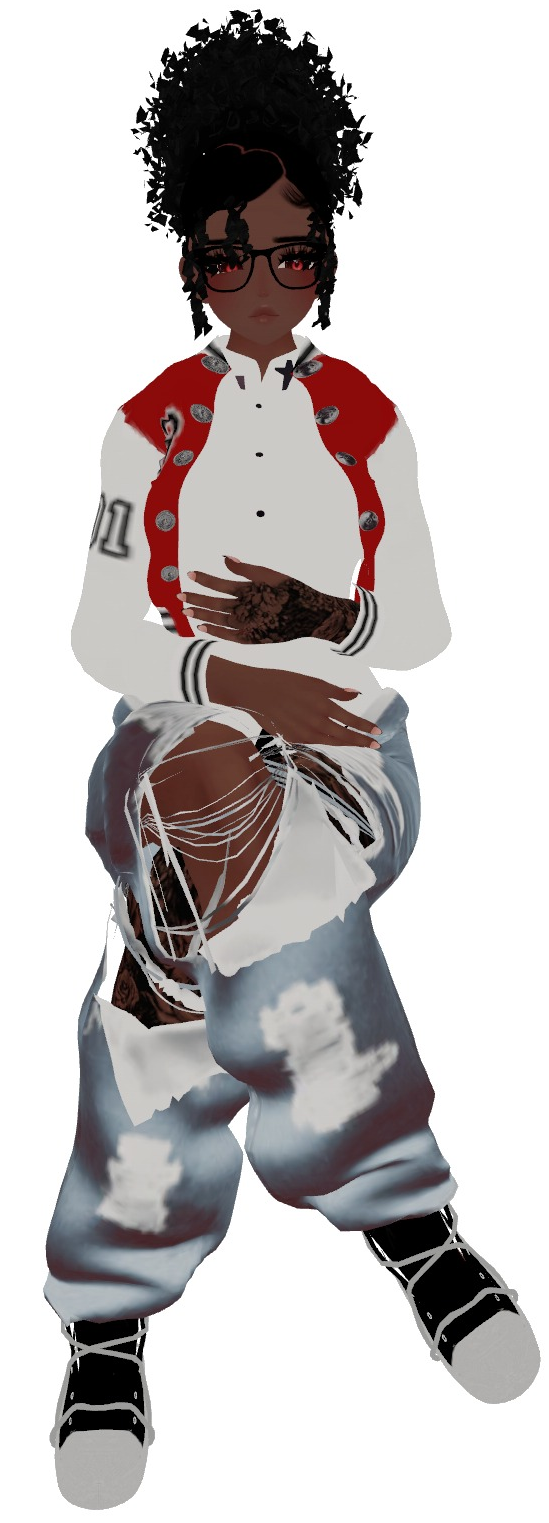 Glasses Lenses - Glasses - Belly Rings - Cross Necklace - Brows - Eyeslashes - Earring - Tie - Nails - Tattoo - Pasties - Leg Fishnet - Top Fishnet - Body - Wet Skin - Eyes - Head edited by Kaiylast no reuse - Jeans - Thunder Hightops - Rick - Hand Gestures - Fake Index - Braids - Bun Locs - Bun - Long Passion Twists - LovelynsCurlyHair - Bikini Hoodie - Dress Shirt - Tank - Tech Jacket - Varsity - Fitted Bodysuit - GoGo Loco - VRCFury - Face Tracking - d4rkAvatarOptimizer