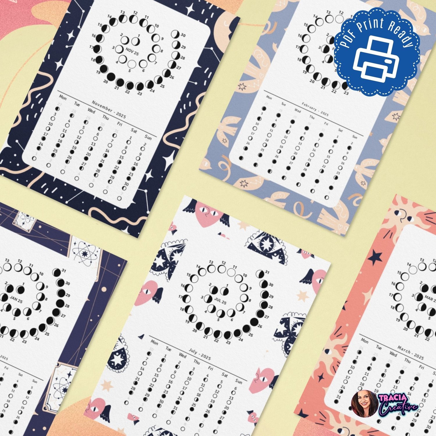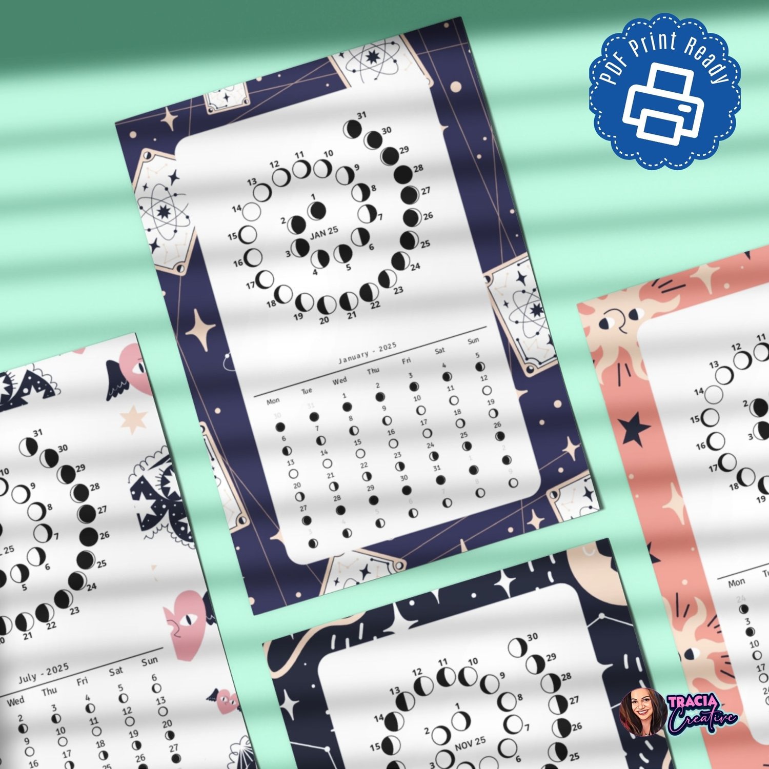 2025 Moon Phases Monthly Calendar - Printable Digital Download PDF