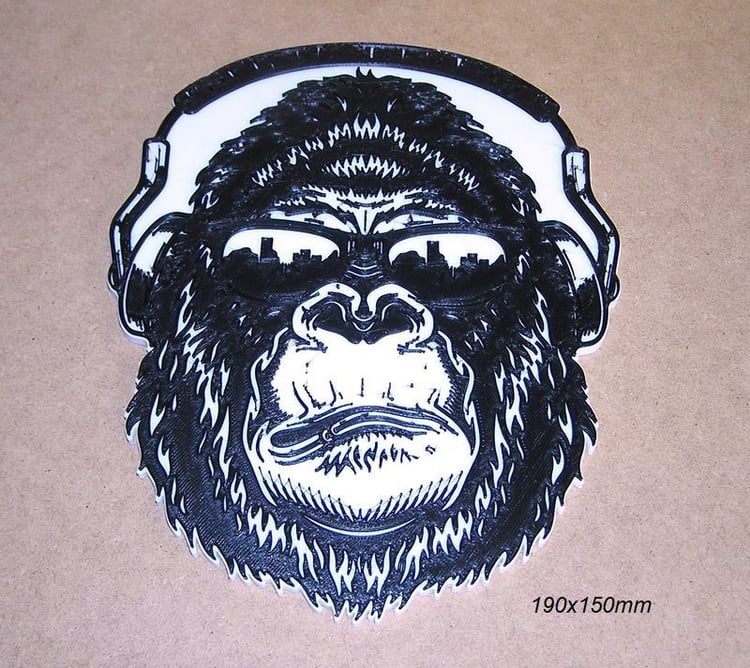 Poster, gorilla logo military helmet, these STL and Gcode files have been created to be printed in various colors with any FDM type printer. The color changes have been made with the Elegoo Neptune 3 Pro printer, but they can be printed on any printer.