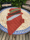 The colours of this huge wool hug are inspired by the colours of Gwent in winter; the rust red colour of the hillsides, broken up by green sheep grazing, brown patches of felled forest and sometimes the grey cloud is so low you can’t even see the landscape.