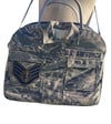 There are several choices for the front of the Oh Shirt! bag. There is a smaller collar and pocket, a larger collar and pocket plus military pockets for each branch of the US military. The military versions are modeled after work uniforms. The bag can be carried using the handles or over the shoulder with the included shoulder strap pattern.;