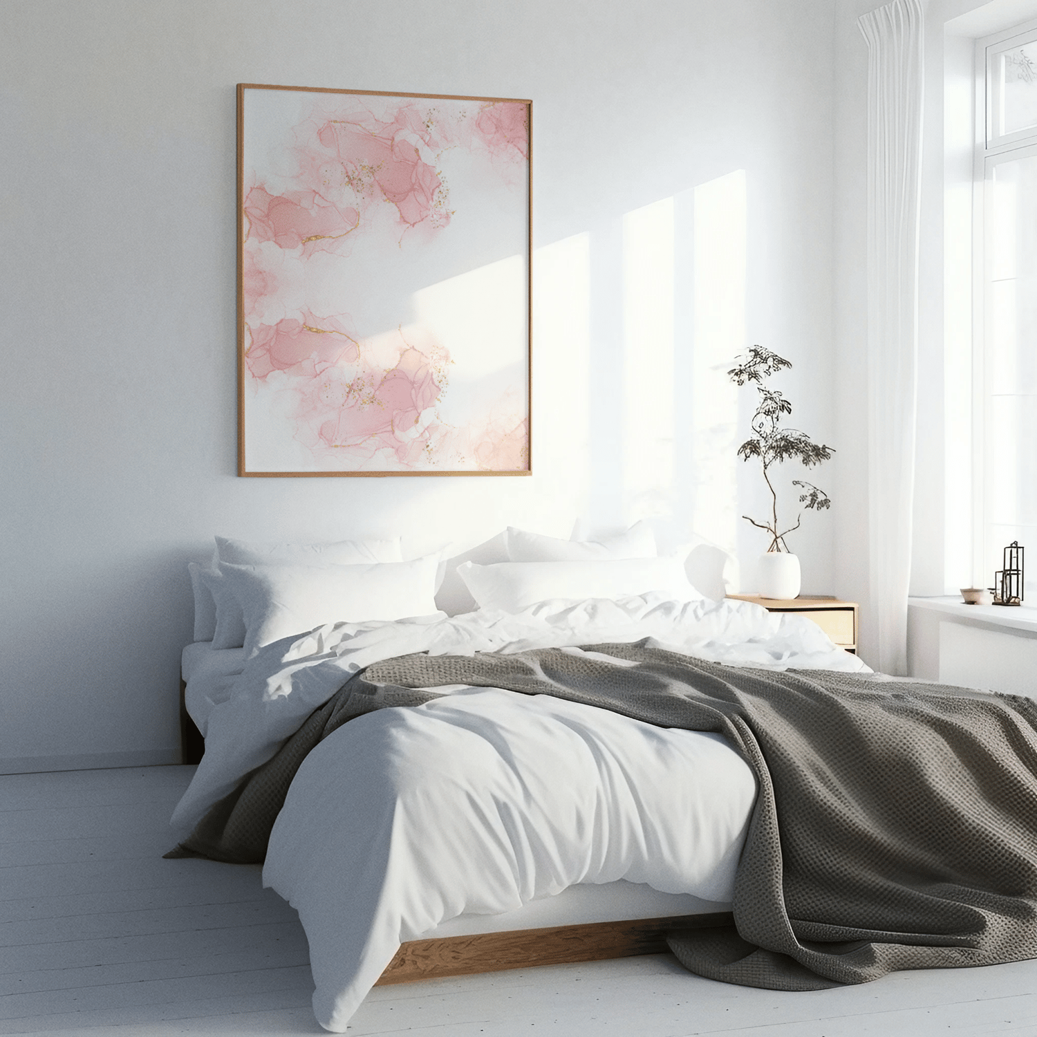Soft pinks and gold with an abstract feel. Stylish and feminine..