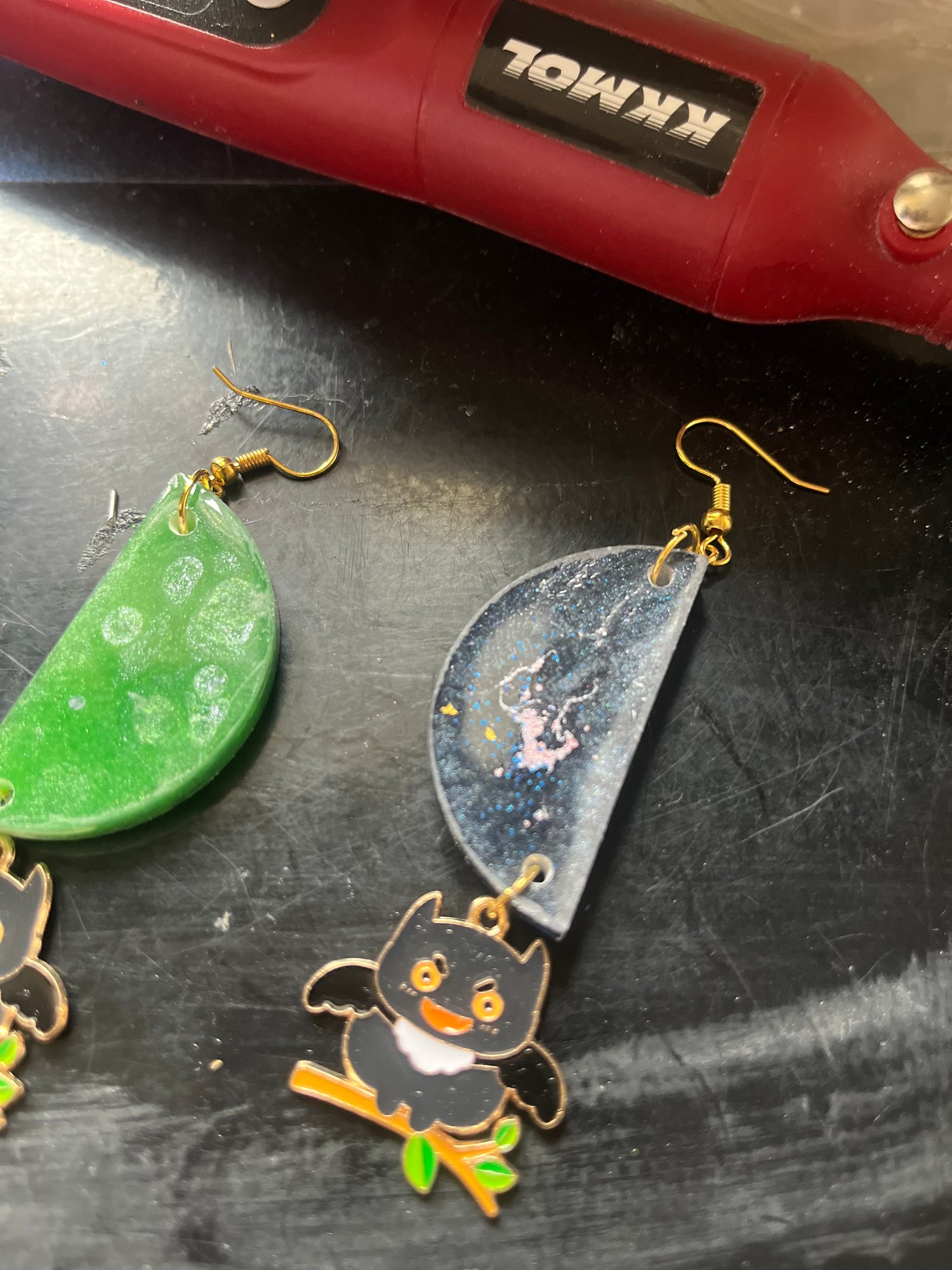 Take your style on a magical flight with these enchanting earrings. Each pair features shimmering half-moon resin pendants paired with a charming little owl, all set on elegant gold-plated drops. Whether you’re channeling celestial vibes, adding a touch of woodland whimsy, or embracing your witchy side for spooky season, these earrings are a perfect year-round accessory.