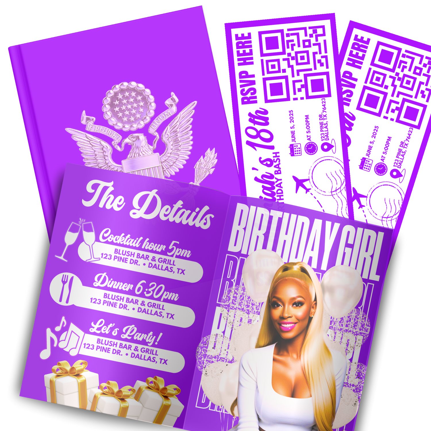 Take your celebration to new heights with this beautifully designed bundle of 10 Passport Style Invitation Templates! Perfect for destination weddings, travel-themed parties, bridal showers, birthdays, or baby showers. These editable Canva Pro templates are stylish, unique, and completely customizable.